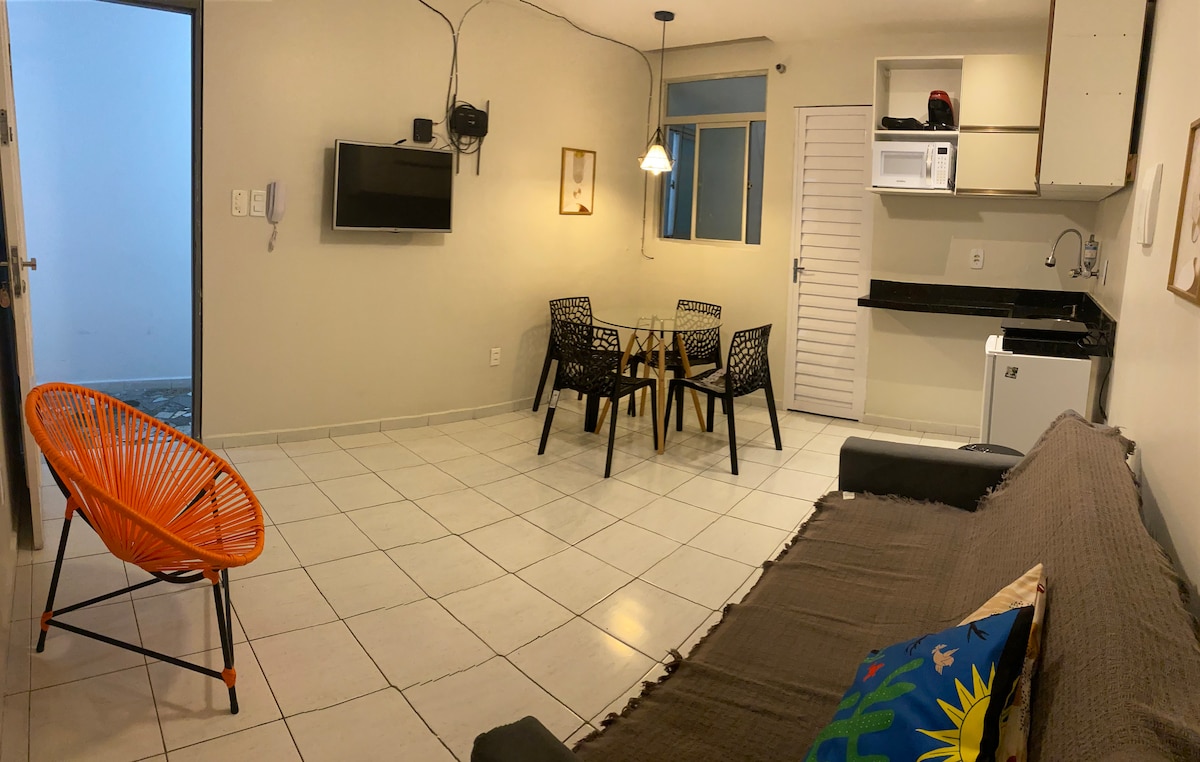 Studio de 1 quarto, localizado no coração de Campina Grande, ao lado do Parque do Povo, 3 minutos à pé do açude velho e 5min do centro da cidade. -Quarto com cama de casal e ar condicionado; -Cozinha equipada; -Mesa de jantar; -TV; -Chuveiro elétrico; -Sofá cama. Acomoda até 4 pessoas. Obs.: alugueis acima se 28 dias cobrada taxa de energia R$1,00 por Kw consumidos.