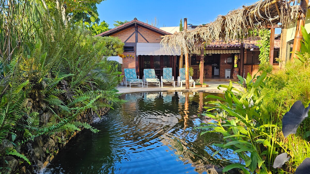 Casa com elevador, piscina, cinema e praia à 5 min