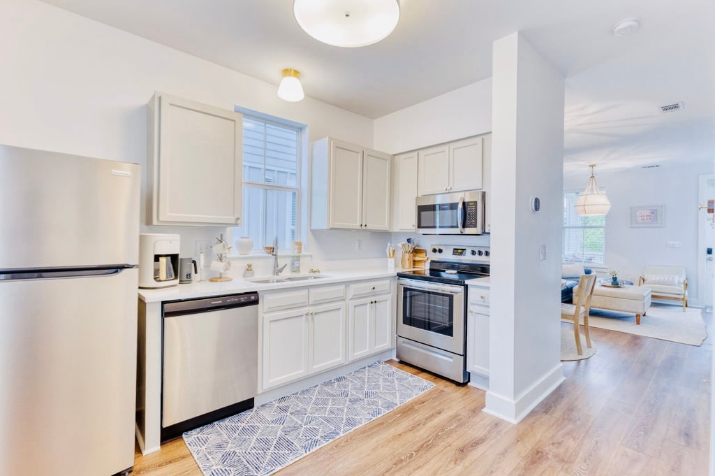 Enjoy your get away in a stylish, centrally located town home with all the feels of home. Everything you need to enjoy the beautiful sights and beach are easily accessible from The Blue Heron. Walking distance to shopping, restaurants, and the park, one block off the beach- The Blue Heron is in the middle of it all. This is an upstairs/downstairs unit with fully equipped kitchen, full size appliances and stocked Keurig coffee bar. Queen size beds in each bedroom with en-suite bathrooms.