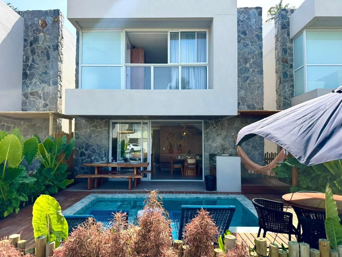Beachfront house in the Naluum Condominium, Praia do Marceneiro, São Miguel dos Milagres. Accommodates up to 10 adults and 2 children in 4 suites with air conditioning, bed linen, and towels. Spacious living room integrated with kitchen, private pool, barbecue, and dining area. The condominium offers a pool and gym. Direct beach access and close to the Rota Ecológica dos Milagres, featuring paradisiacal beaches, natural pools, and charming villages.