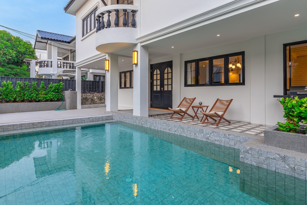 4 սենյականոց առանձնատուն 4 լոգասենյակով և լողավազանով | Ընդարձակ հանգստի պարտեզ | Լողավազան ննջասենյակում | Միջին երկնքի լողափի մոտակայքում | Գիշերային շուկայի մոտակայքում | Թեթև շքեղ ժամանակակից ոճ | Ազատ կայանատեղի համայնքում