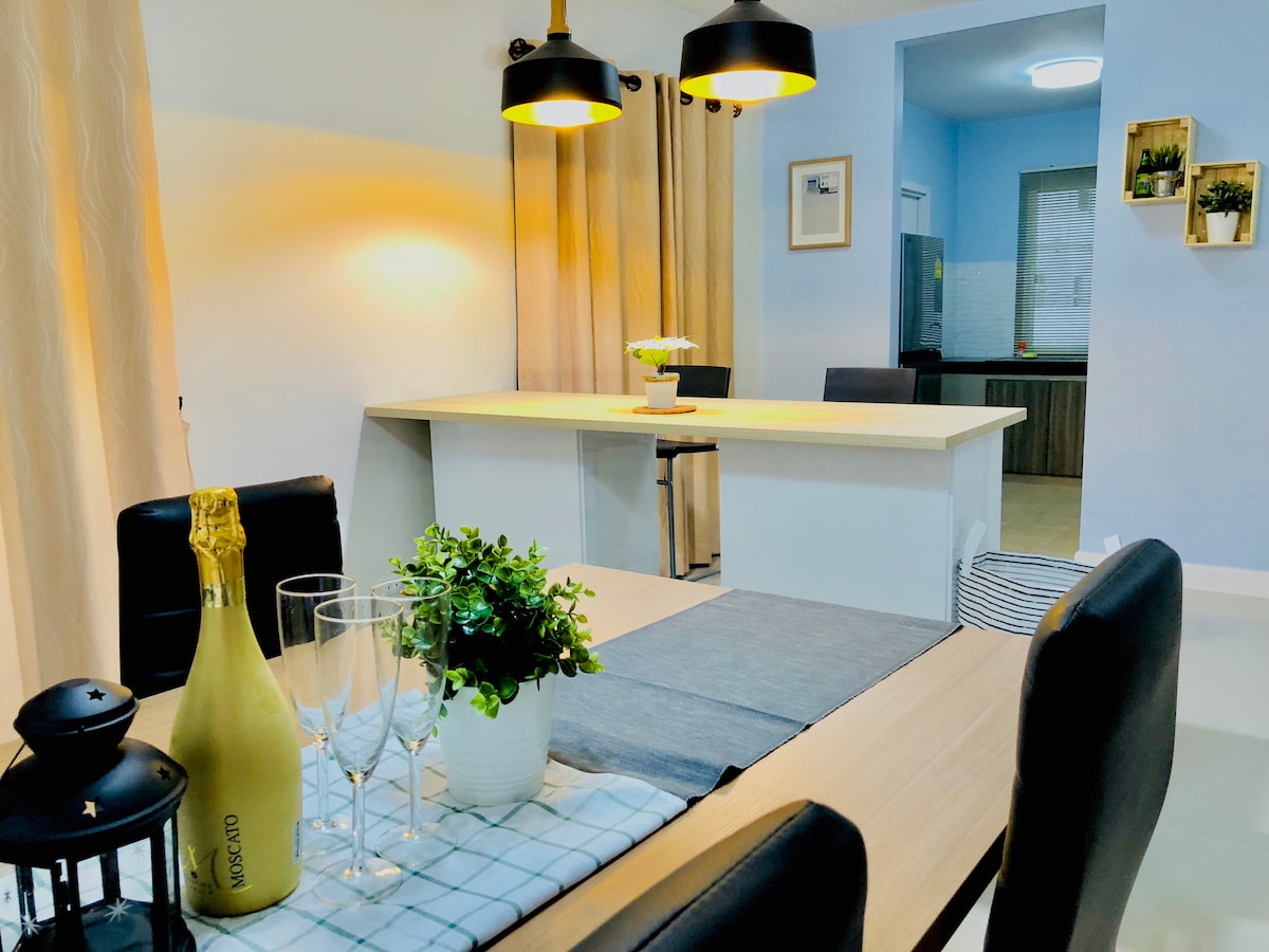 - Բրենդային նոր պայծառ ընդարձակ երկհարկանի տուն ժամանակակից բնական տան զարգացման մեջ Հարավարևելյան Պատտայայում ։ - Գտնվում է Սուխումվիտից դեպի արևելք ՝ Ջոմտիեն լողափին մոտ գտնվող Soi Chaiyapruek - ից (10 րոպե )։ - Նոր ժամանակակից եվրոպական խոհանոց և բոլոր նոր կենցաղային սարքերն ու բարային սննդի տարածքը: - Ճաշասենյակի և հյուրասենյակի բոլոր նոր կահույքը -3 ննջասենյակ (2 սենյակ ՝ կահավորված ննջասենյակի նոր կահույքով և զգեստապահարանով) - Ավտոկանգառ 2 տրանսպորտային միջոցի համար - Զարգացումն ունի շուրջօրյա անվտանգություն ։ - Համայնքային լողավազան և ակումբ ՝ ֆիթնես կենտրոնով