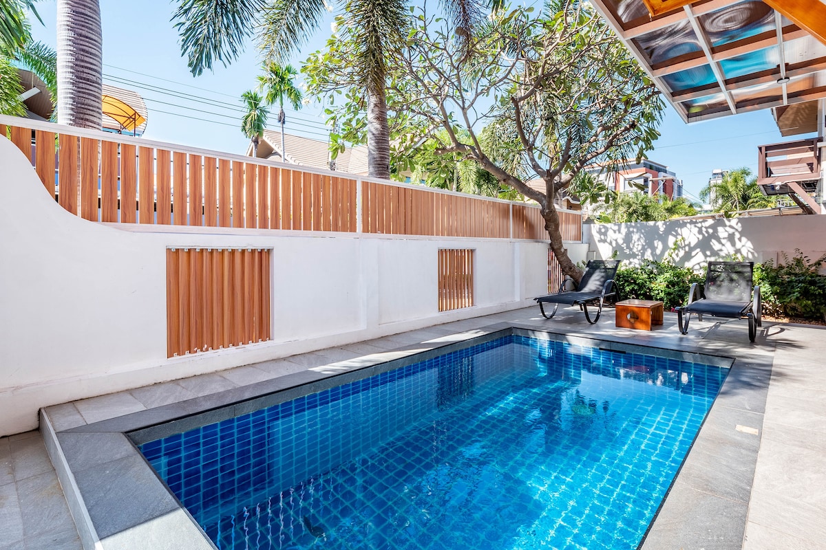 Հանգստացեք շքեղություն Պատտայայի սրտում գտնվող մասնավոր լողավազանի վիլլայում ։ - Մեր սեփականության տարածքում կա ընդամենը 5 մասնավոր վիլլա, որոնցից յուրաքանչյուրը հասանելի է վարձակալության համար ՝ ապահովելով առավելագույն գաղտնիություն և անվտանգություն ։ - Կատարյալ է ընտանեկան արձակուրդների, ընկերական հավաքույթների, պիկնիկների կամ տոնակատարությունների համար ։ Յուրաքանչյուր վիլլա ունի խորովածի տարածք և լիովին կահավորված խոհանոց ՝ ձեր հարմարության համար: - Մենք նաև առաջարկում ենք լիակատար աջակցություն և օգնություն, որոնք կօգնեն կատարել ձեր ցանկություններն ու հատուկ խնդրանքները ձեր այցի ընթացքում ։