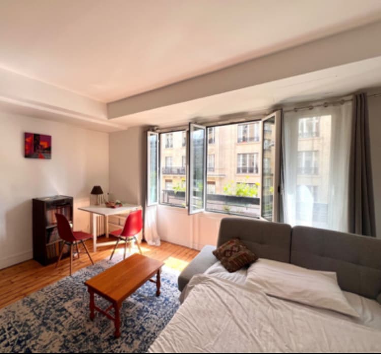 Beautiful studio in the heart of Neuilly-sur-Seine, fully renovated in 2025. Formerly a mews, nestled in a 1930s Art Deco house, it offers a peaceful and character-filled setting. Just steps from Paris, in one of its most elegant and exclusive neighborhoods, this guesthouse-style independant studio combines comfort, smart design and charm. Fully equipped kitchen, 160 cm bed, high-speed Wi-Fi, smart TV, bathtub, and leafy private patio. A refined cocoon for a calm, elegant and inspiring stay.