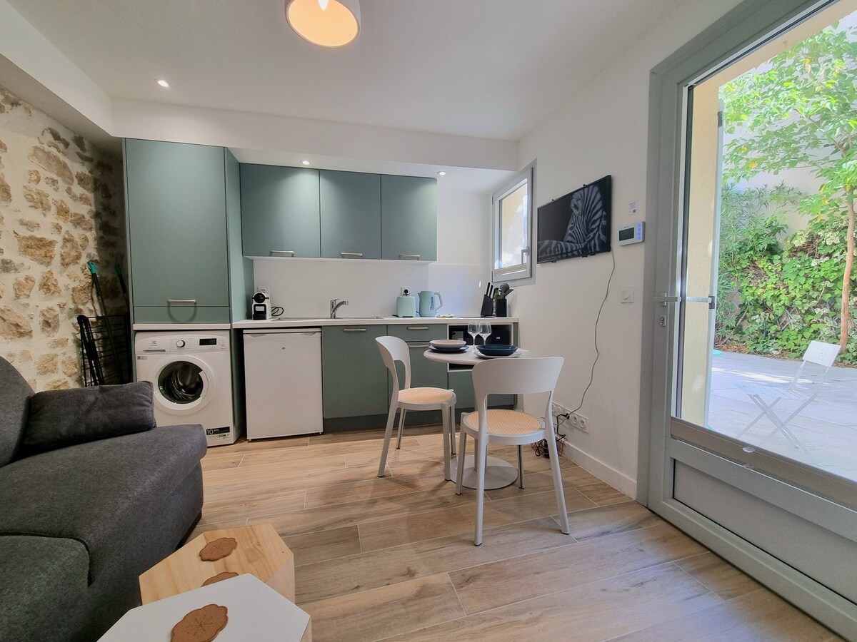 Charmant T2 climatisé,joliment meublé et totalement équipé tout confort actuel, en rez de chaussée, donnant sur jardin privé, en plein centre historique de la ville, tout en étant parfaitement calme, en face du Pavillon Vendôme.