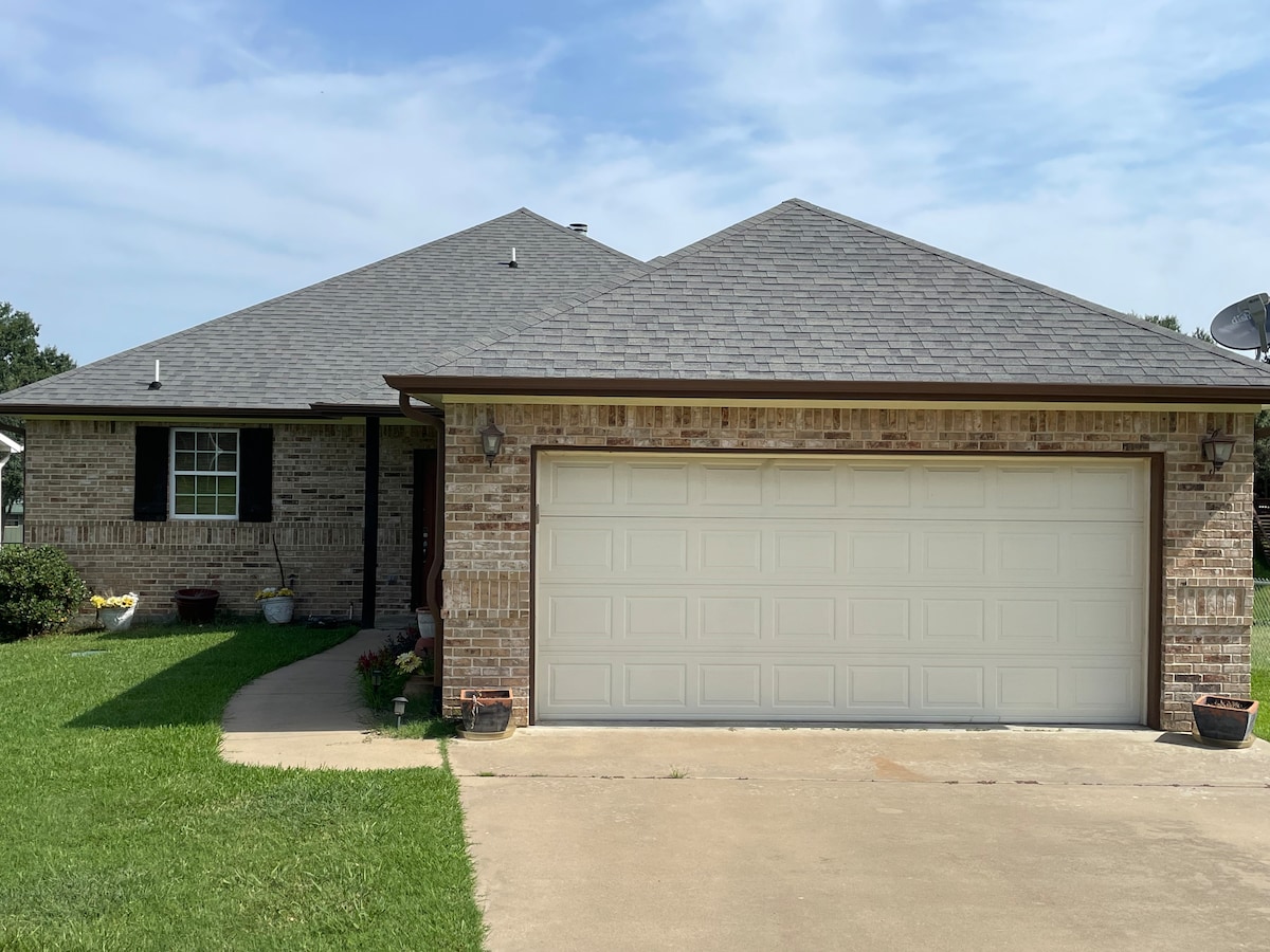 Relaxing waterfront 2/1 open floor plan in the country. Large 6 chair dinning room table. Lots of amenities in the kitchen. TV's in allrooms. Sitting area's on front and back porch's. Has gas grill and picnic table on back porch. Fire pit area, porch for gathering, hammock for relaxing. Fully fenced yard. On protective cove. One house from open cove. Great for Kayaking, paddle boat, swimming. Fishing dock. Minutes from shopping, restaurants, golf, Canton First Monday, etc.