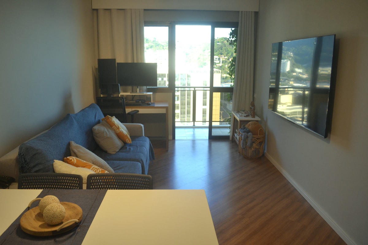 Geniet van een onvergetelijk verblijf aan het strand van Barra da Tijuca, waar luxe en rust samenkomen. Ontspan in het verwarmde zwembad met prachtig zeezicht, in een superluxe 63 m² 1-slaapkamer suite appartement, volledig uitgerust voor jouw comfort. Met dagelijkse schoonmaak, 24u-beveiliging, privéparking, fitness, sauna, jacuzzi en zwembad is dit de ideale plek om te genieten. Reis je met familie of vrienden? Bekijk ook mijn gloednieuwe luxe 2-slaapkamer suite via mijn profiel.