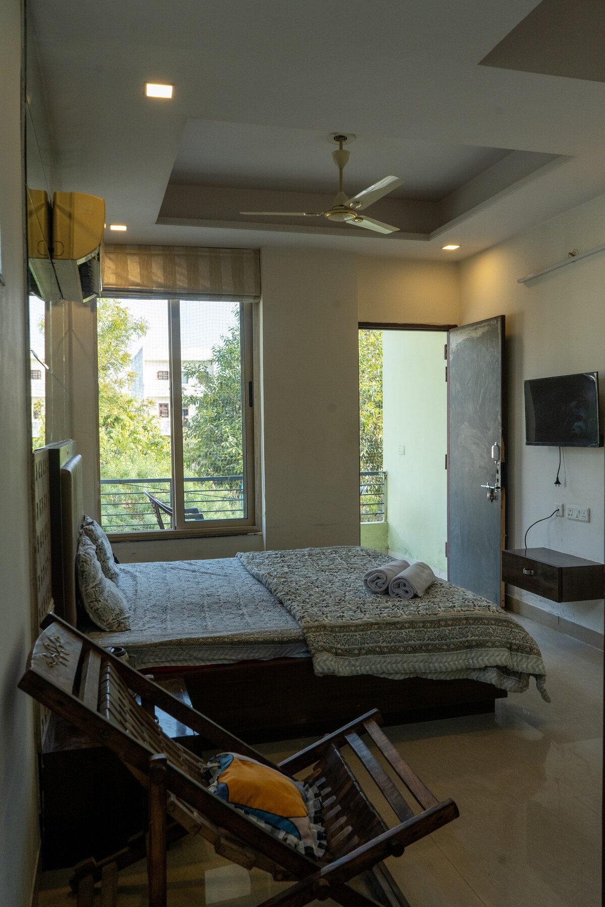 Studio apartment near the Mumbai–Delhi Highway, perfect for road travelers and also near to gandhi Nager railway station and Airport , close to Hyatt Regency. Located near Mansarovar, the property offers easy access to popular attractions such as Patrika Gate, Jawahar Circle, World Trade Park, and Central Park. Enjoy modern interiors, a cozy private balcony, and a peaceful vibe—ideal for work stays, staycations, or relaxation. high-speed internet, and Netflix