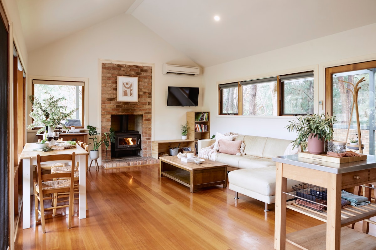 The nook is a gorgeous self-contained cottage retreat ideal for couples, singles, or families. Two bedrooms with queen-sized beds, sumptuous linen and an open living plan around a wood fireplace. Set up on the sun porch with a book and a glass of wine, or cook a meal with local produce in the open kitchen. Enjoy the picturesque garden, firepit & dining area. The perfect retreat for Brae diners! Now Pet Friendly. NEW (Dec24) - Outdoor Firepit - Outdoor dining area SOON (Nov25) - Hammock