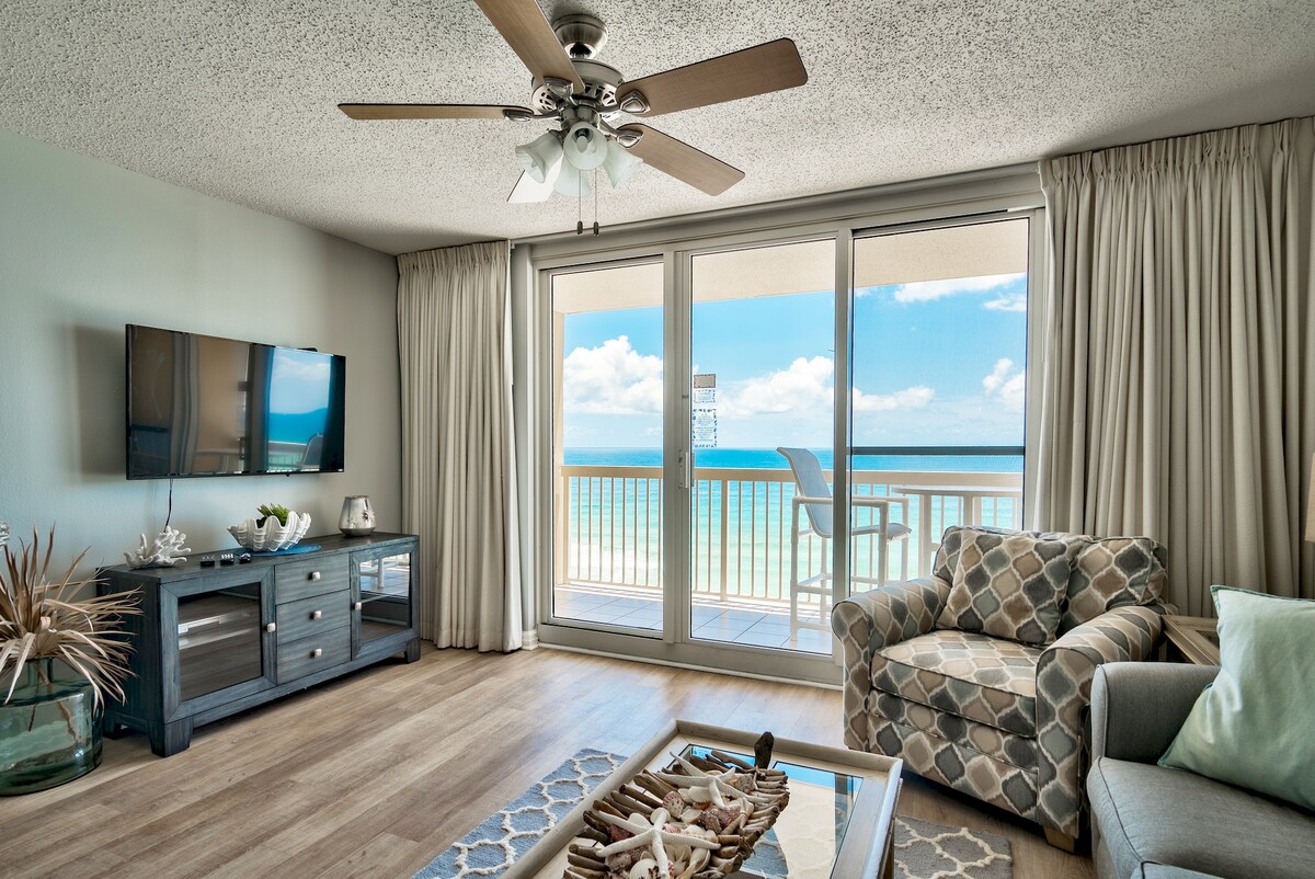 **Recently Updated Interior!** Experience the stunning Gulf of America from the comfort of this beachfront 2-King bedroom, 2-bath condo located directly on Pensacola Beach, named America’s Best Beach by the Condé Nast Traveler Readers’ Choice Awards! This beach condo boasts a vibrant interior filled with beach-themed accents, a private balcony with sweeping ocean views, and access to 2 pools (1 heated) and a hot tub. Enjoy the best restaurants and shopping on the beach, all within a short walk.