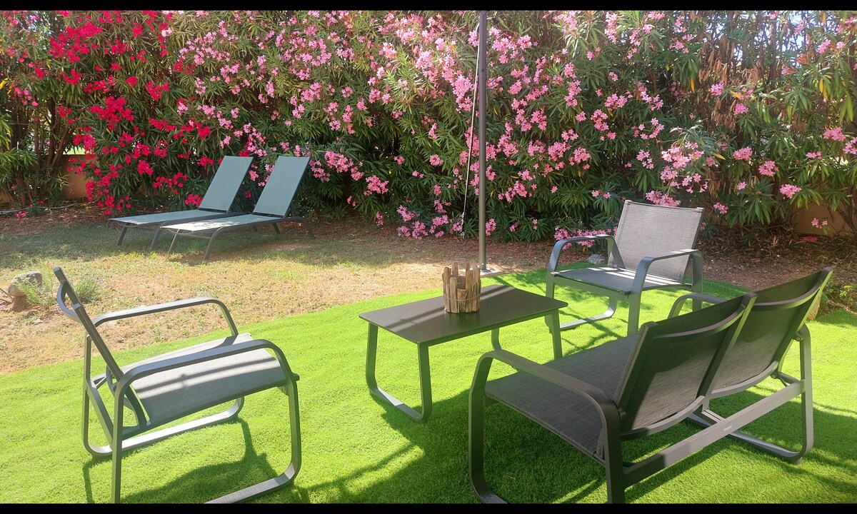 Բարի գալուստ մեր բոլորովին նոր, օդորակված տնակ, որը գտնվում է օլեանդրերով պատված մասնավոր, փակ պարտեզի սրտում։ Վայելեք ժամանակակից և հարմարավետ տարածք երկուսի համար, որը գտնվում է լողափից և բոլոր հարմարություններից՝ սուպերմարկետից, դեղատնից, ռեստորաններից 3 րոպե հեռավորության վրա։ Ձեր տրամադրության տակ է խոհանոցը ՝ հագեցած սալօջախներով, միկրոալիքային վառարանով, սառնարանով, լվացքի մեքենայով, էսպրեսո մեքենայով, թեյնիկով ։ Մեծ էկրանով հեռուստացույց, շքեղ լոգասենյակ և 90X120 ցնցուղ, վարսահարդարիչ, խաղեր, հարմարավետ աթոռներ, բացօթյա սեղան և բազկաթոռներ