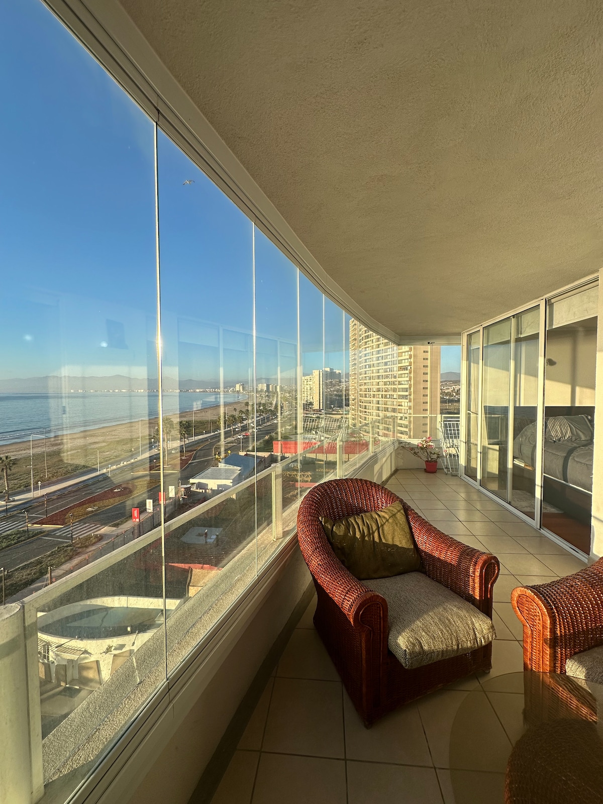 Եթե փնտրում եք հիանալի տեսարան կամ բացառիկ բացիկներ, ապա սա ճիշտ վայրն է։ Բնակարանը, որը գտնվում է բազմաբնակարան շենքի 19-րդ հարկում, ունի Կոկիմբոյի և Լա Սերենայի լայն արտոնյալ տեսարան։ Այստեղ կգտնեք հանգստանալու և լողափում մի քանի օր անցկացնելու համար անհրաժեշտ ամեն ինչ։ Երկտեղանի սենյակ առանձնաբաժնում ։ Լիովին կահավորված խոհանոց։ Wi-Fi։ 2 սմարթ հեռուստացույց, կաբելային հեռուստատեսություն։ Թվային բանալիների հասանելիություն ։ Խորովածի տարածքներ, մարզասրահ և լողավազան։ Շատ մոտ է խաղատանը, բարերին և ռեստորաններին։