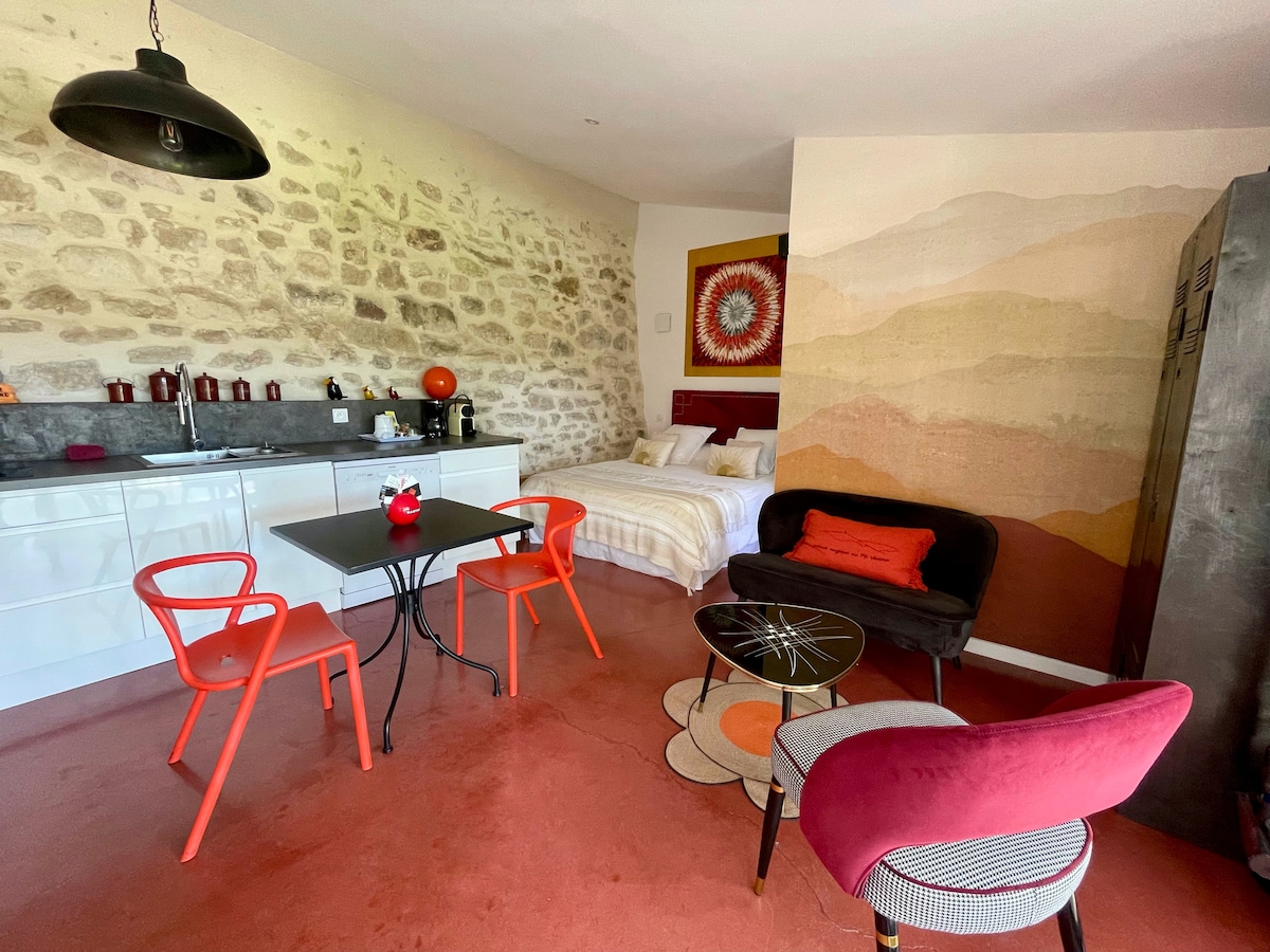 À Goult, maison de village organique privatisée, imaginée par un antiquaire-architecte. Un lieu vivant, mêlant matières, pièces anciennes et charme authentique. Accès à la piscine de 12 m et au jardin du propriétaire, partagés avec cinq autre logements paisibles. Une expérience intime au cœur du village. Le parking public gratuit est à une minute, juste en face du café Le Goultois.