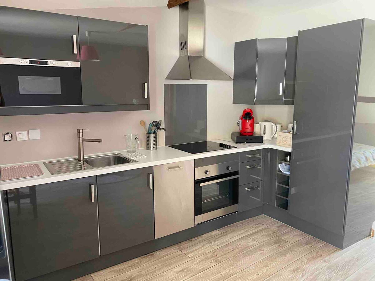 Մեր 33մ² մակերեսով նորակառույց տարածքն ունի օդորակիչ և գտնվում է Դիժոնի հմայիչ, պատմական կենտրոնից ։ Մեր տան հետևի առանձին փոքր շենքում դուք կունենաք ձեր սեփական հյուրասենյակը/խոհանոցը, առանձին ննջասենյակը և լոգասենյակը: Տան դիմաց կա անվճար հանրային կայանատեղի փողոցում ։ Դուք անմիջապես կլինեք Palais des Congrès - ի և Auditorium - ի հարևանությամբ, և տրամվայով կարճ ուղևորություն դեպի երկաթուղային կայարան, համալսարան և հիվանդանոց ։ Մոտակայքում կան սուպերմարկետներ և այլ խանութներ ։ Nous parlons également français.