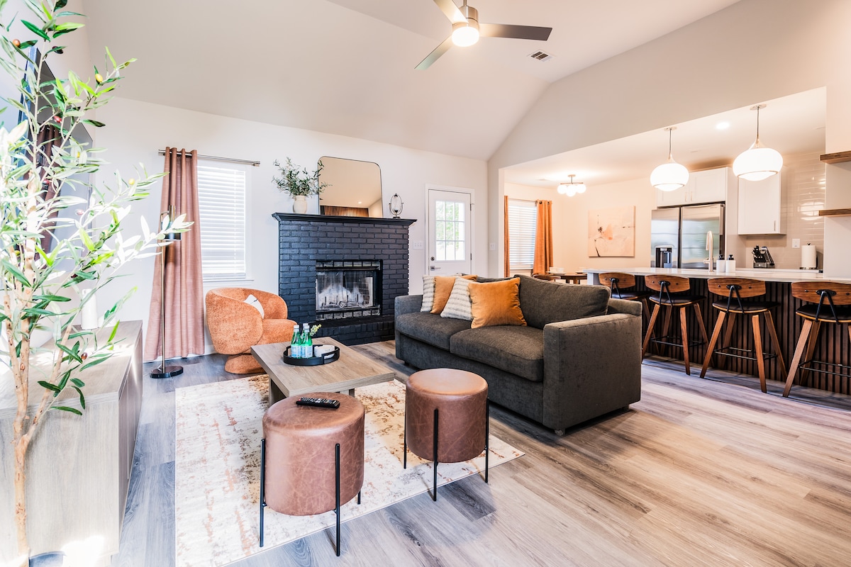 Վերադարձեք և հանգստացեք այս հանգիստ, ոճային տարածքում ։ Ժամանակակից շքեղությունը սպասում է արագ տեմպից այս կատարյալ փախուստին: Այս 2BR/2BA Plus Loft - ը գտնվում է 8 հեկտար տարածության վրա, որտեղ դուք շրջապատված եք բնությամբ և փոքրիկ լճակով ՝ բոլոր հարմարություններով, որոնք անհրաժեշտ են հիանալի այց ունենալու համար: Խոհանոցը և բնակելի տարածքը լիովին հագեցած են սուրճով և սմուզի բարով, բուխարիով և մեծ էկրանով հեռուստացույցով ։ Սպասվում են շքեղ անկողնային պարագաներ և սպա, օրինակ ՝ լոգասենյակներ ։ Բացօթյա ցնցուղարանը, ջակուզին ու հսկայական պատիոն կբարելավեն ձեր այցը ։