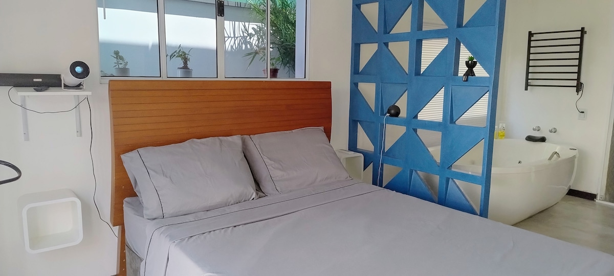 Esqueça de suas preocupações neste lugar espaçoso e tranquilo, com muita luz natural e uma linda vista para a exuberante Mata Atlântica da reserva Ecológica da Juréia/Itatins, a 5 minutos da praia do Guaraú, em Peruíbe, Litoral Paulista. Local seguro com estacionamento privativo, Wifi, telas de proteção contra mosquitos, ventilador de teto, e muita privacidade. Ótimo custo-benefício.