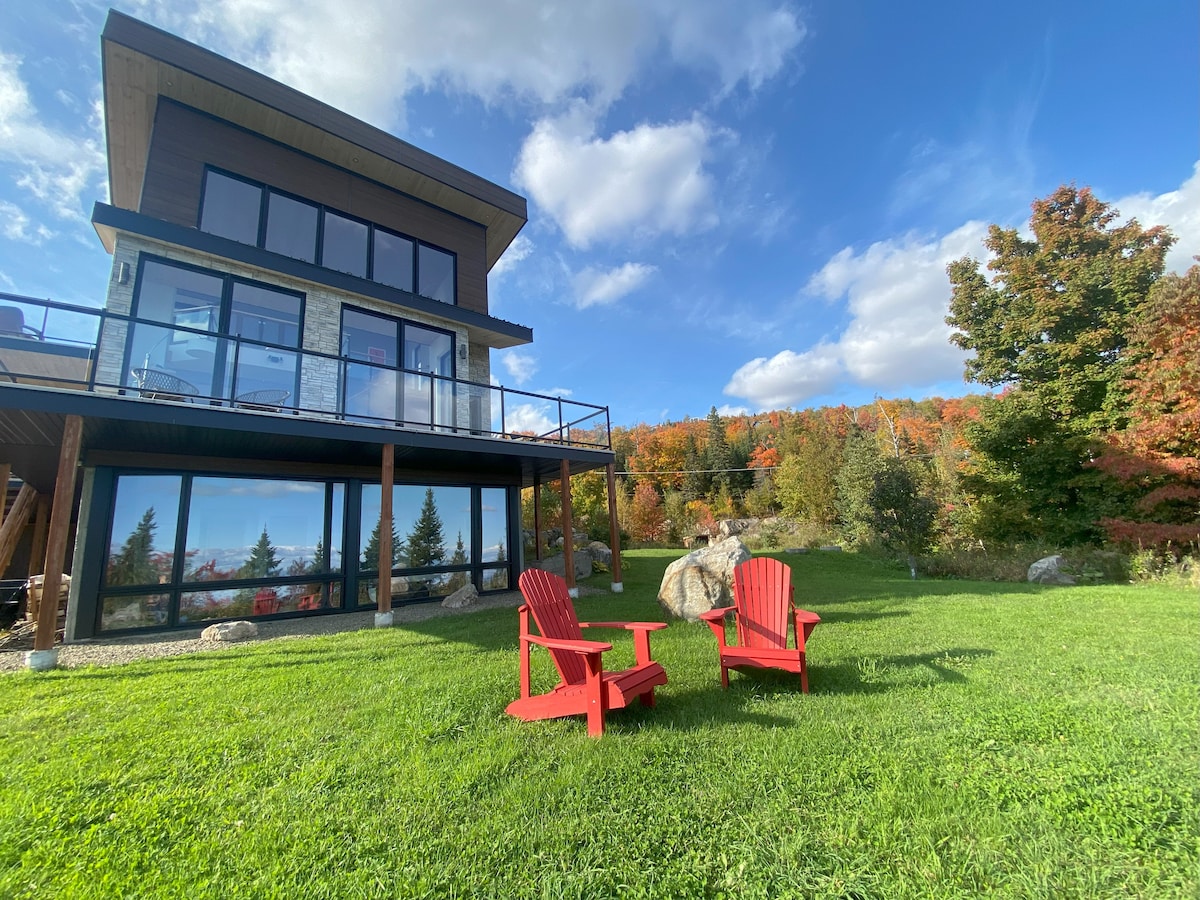 Սկանդինավյան փոքր շալե երկու հոգու համար, որոնք իդեալականորեն գտնվում են ՝ վայելելու Charlevoix - ի տեսարժան վայրերը ։ Այն ունի ջերմային միացում (ջակուզի, շոգեբաղնիք, համամ) Շատ մտերմիկ և անտառների մեջտեղում, տեսարանը նայում է վեհաշուք գետին և հեռվում գտնվող լեռներին: Բոլոր ժամանակակից սարքավորումները կան, իսկ հարմարավետությունը ՝ բացարձակ A/C և բացօթյա բուխարի ։ Բաց կոնցեպտի դիզայնը նախատեսված էր բնության մեջ խորասուզված փորձառության համար ՝ մեծ պատուհաններ, համայնապատկերային ցնցուղարան: Մուտք գործեք մասնավոր ճանապարհով ՝ 500 մ բարձրության վրա ։