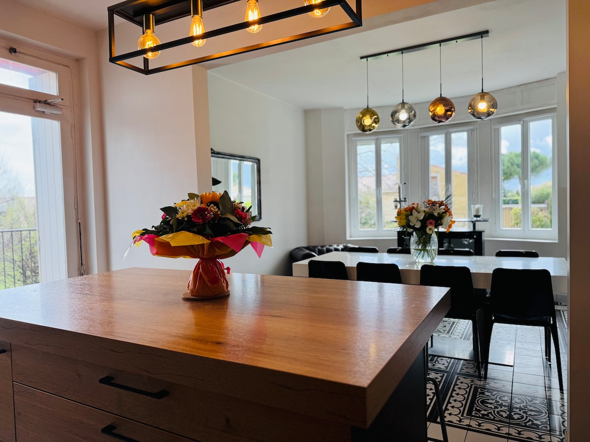 Bienvenue dans cet ancien affenage du XVIIe siècle entièrement reconverti en loft de caractère. Il offre de beaux volumes avec une grande pièce de vie lumineuse et une cuisine ouverte conviviale. Il dispose de 3 chambres, 2 salles de bain et d'un garage pour 2 véhicules. Idéalement situé au cœur de Carcassonne, à 50 m des Halles, restaurants et commerces, et à 15 minutes à pied de la Cité de Carcassonne. Maison entièrement climatisée.
