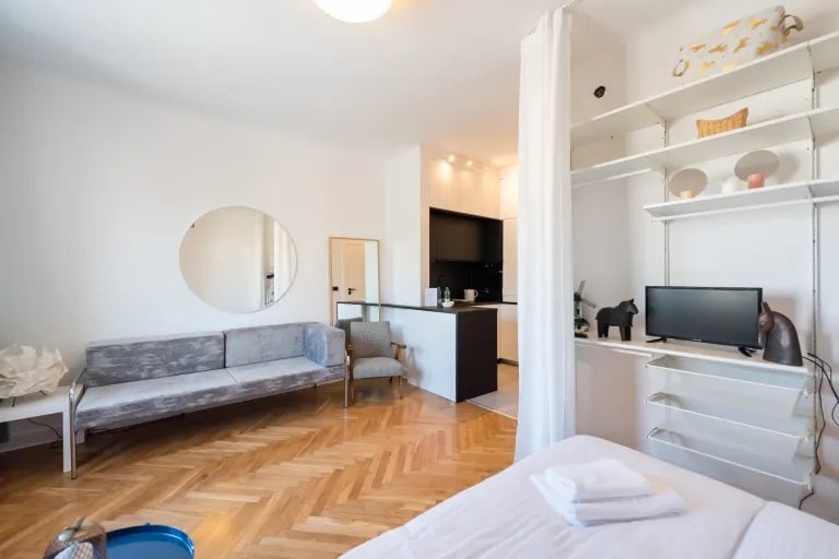 Գեղեցիկ ընդարձակ ստուդիա Հին քաղաքում Այս ստուդիան գտնվում է հաճելի թաղամասում, որտեղ փաբեր և ռեստորաններ կան մոտակայքում, իսկ Թագավորական ճանապարհը՝ ընդամենը 150 մետր հեռավորության վրա։ 2013 թվականին ամբողջությամբ վերանորոգված մեր ստուդիան հարմարավետորեն տեղավորում է մինչև 2-4 ուղևորի (մեկ երկտեղանի մահճակալ և լրացուցիչ քաշովի բազմոց)։ Լիովին կահավորված խոհանոց՝ սրճեփ մեքենայով, թեյնիկով և հիմնական խոհանոցային պարագաներով։ Մենք նաև տրամադրում ենք քարտեզներ, ուղեցույցներ և այլ նյութեր, որոնք կօգնեն կողմնորոշվել Վարշավայում։ Wi-Fi, Apple TV և NETFLIX Հուսով եմ՝ կհանդիպենք Վարշավայում։