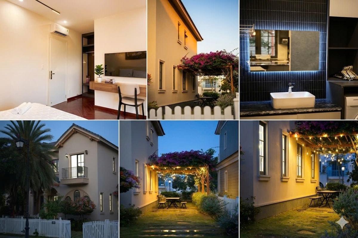 Tận hưởng kỳ nghỉ tại villa 3PN sang trọng trong NovaWorld Phan Thiết, phù hợp cho gia đình và nhóm bạn. Mỗi phòng có WC riêng, đảm bảo riêng tư và thoải mái. Villa đầy đủ tiện nghi: bếp có gia vị, TV, lò vi sóng, máy giặt, máy sấy, bàn là. Sân vườn rộng với bàn ghế ngoài trời và BBQ. Vị trí thuận tiện: đối diện hồ bơi, khu trẻ em, chỉ 4 phút xe điện ra biển, gần nhà hàng, café và cửa hàng tiện lợi.