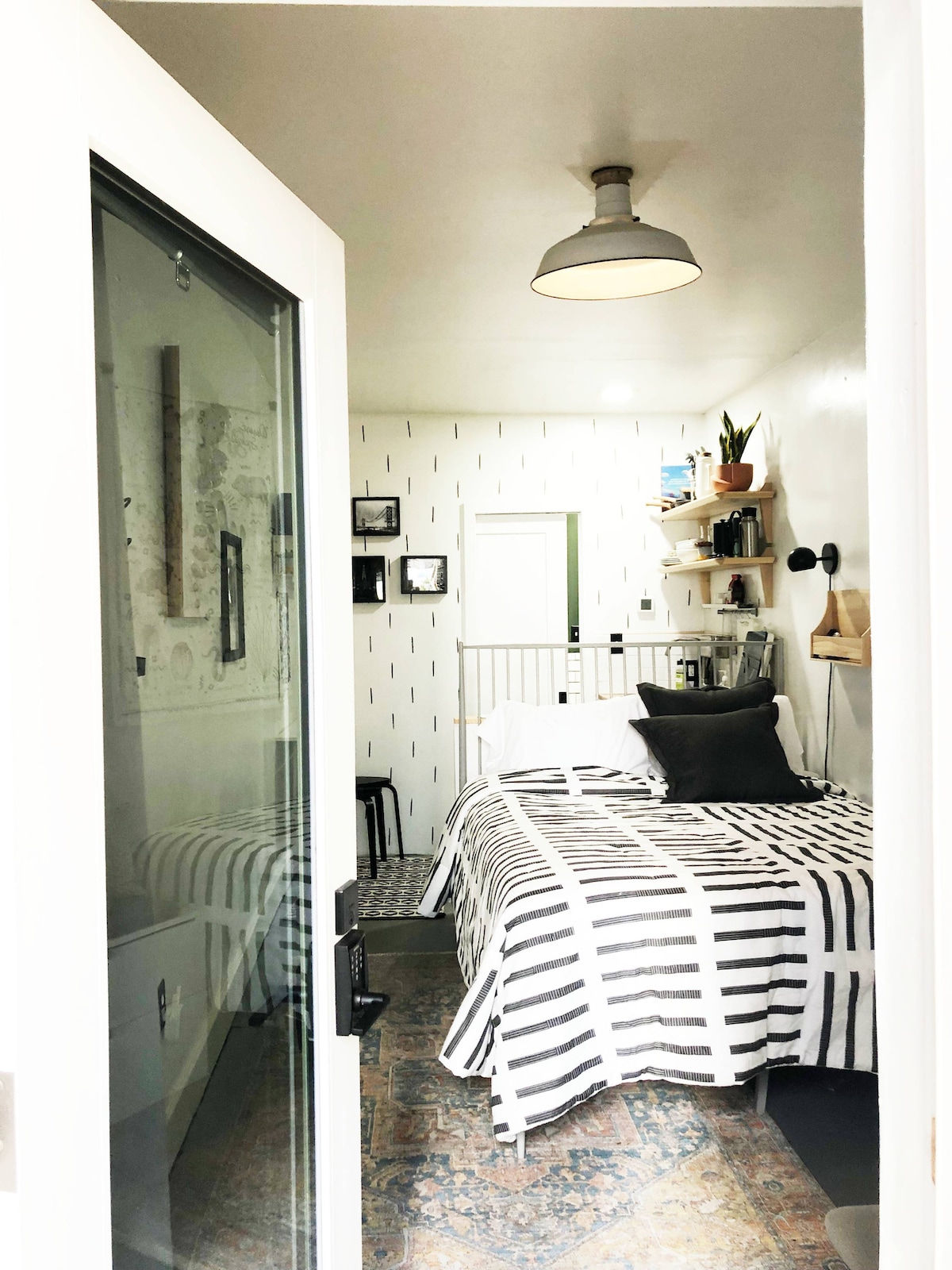 Այս մասնավոր մեկ սենյականոց լյուքսը հանգիստ և հարմարավետ կացարան է զույգերի, միայնակ ճանապարհորդների և գործարար հյուրերի համար։ Ամբողջ տարածքը ձերն է՝ ընդարձակ երկտեղանի մահճակալով, առանձին ցնցուղարանով, հեռուստացույցով և գերարագ Wi-Fi-ով։ Խոհանոցիկում կա սառնարան, միկրոալիքային վառարան և սրճեփ՝ հեշտ ուտելու համար։ Հատուկ աշխատանքային տարածքը հեշտացնում է հեռավար աշխատանքը։ Ամենից լավն այն է, որ կունենաք ձեր անձնական, հատուկ կայանատեղը՝ մուտքից մի քանի քայլ հեռավորության վրա, ինչը կհեշտացնի ձեր գործը։
