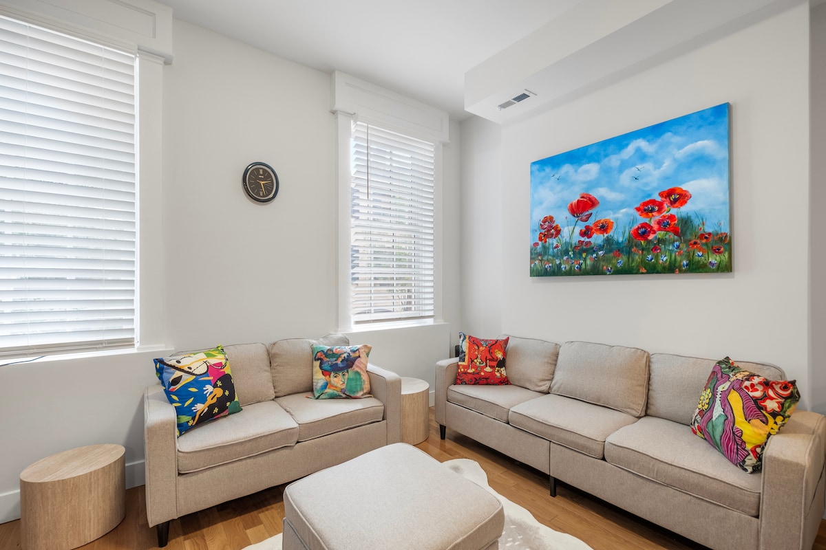 Բարի գալուստ ձեր քաղաքային օազիս ։ Այս ընդարձակ 4 ննջասենյակ (7 մահճակալ), 3 լոգասենյակով տունն առաջարկում է ժամանակակից հարմարավետության և հանգստի միաձուլում, որտեղ հարմարավետորեն քնում են մինչև 12 հյուր ։ Վայելեք բավականաչափ բնակելի տարածք, լիովին կահավորված խոհանոց և հարմարավետ ճաշասենյակ ։ Բացօթյա հիանալի տարածքները ներառում են քաղաքի տեսարաններ մեծ տանիքի տախտակամածից: Կայանատեղ 1 տրանսպորտային միջոցի համար ։ Կենտրոնի գտնվելու վայրը միախառնվում է էկլեկտիկ սննդի կետերի և թաղամասերի հիացմունքների հետ ։ Դուք ընդամենը մի կարճ տարանցում եք այն ամենից, ինչ առաջարկում է եղբայրական սիրո քաղաքը