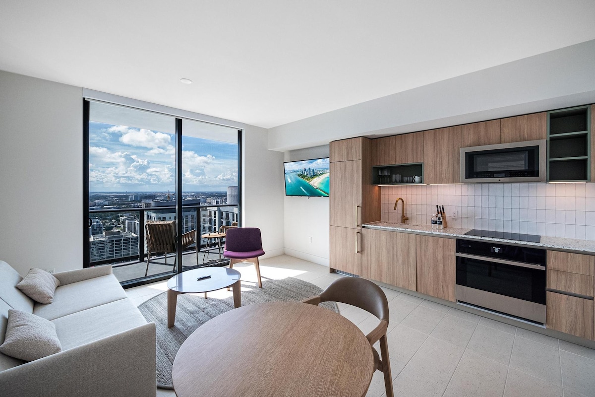 Մնացեք քաղաքի կենտրոնում ՝ մեր բոլորովին նոր 1BR - ում, որը գտնվում է լիարժեք սպասարկման կոնդոմինիումում կամ հյուրանոցում ՝ հյուրանոցի հարմարություններից լիակատար օգտվելու հնարավորությամբ, այդ թվում ՝ լիարժեք մարզասրահ և առողջ ապրելակերպի կենտրոն, լողավազան և ջակուզի, լողավազանի բար և ռեստորան ։ Զբոսնեք Bayside Marketplace - ում, թանգարաններում, խանութներում և Kaseya Center - ում կամ ցատկեք Մետրոմովերի անվճար տրամվայով ՝ քաղաքի կենտրոնում և Բրիկելում շրջելու համար: Մեր կոնդոմինիումն ունի ամբողջական խոհանոց, լոգասենյակ, լվացքատուն և 2 մահճակալ (1 մեծ մահճակալ և 1 բազմոց հյուրասենյակում )։ 32 - րդ հարկ ։ Շուրջօրյա ընդունելություն և անվտանգության աշխատակիցներ ։