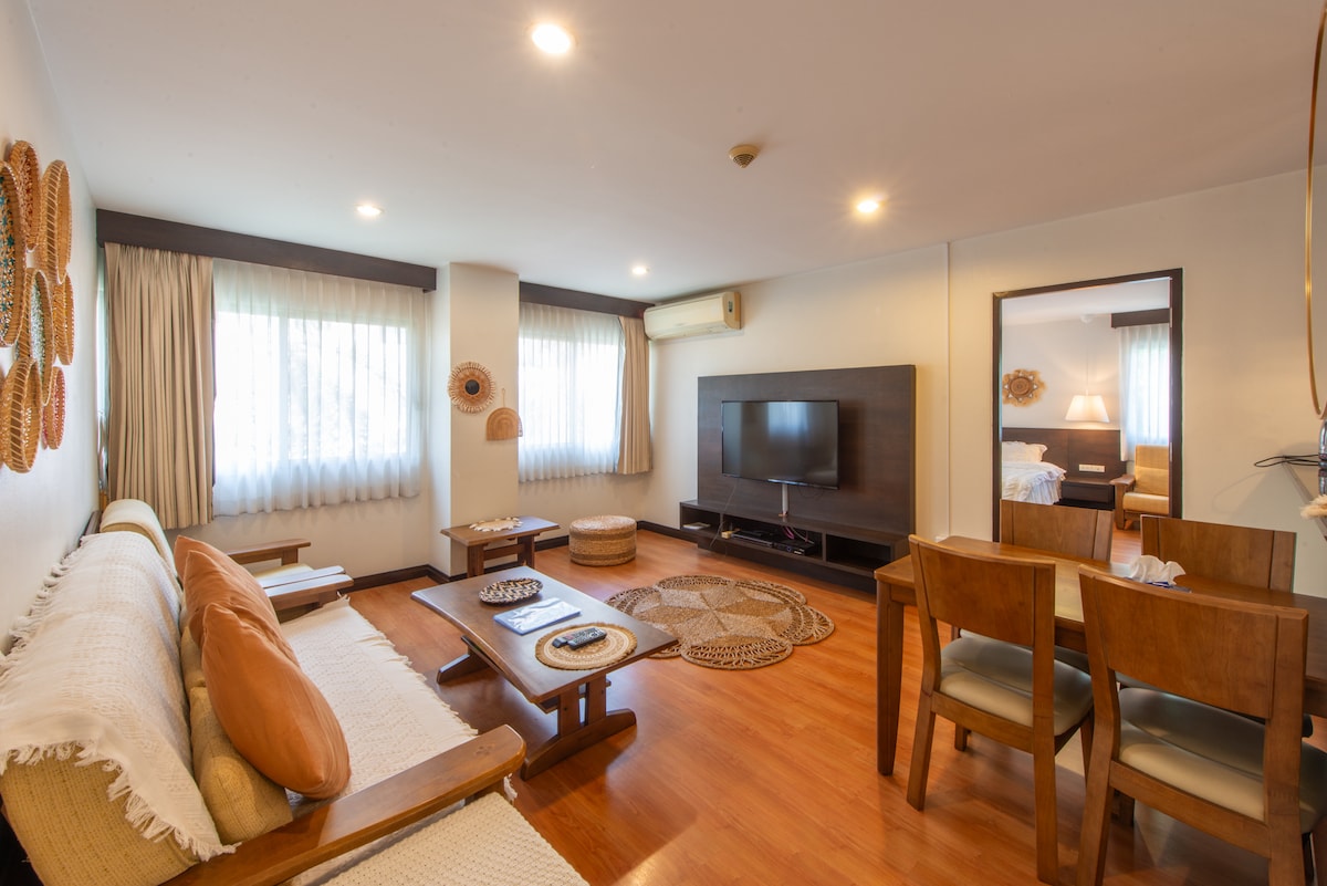 Genieße eine geräumige, frisch renovierte 2 Zimmer-Wohnung im Herzen von Sukhumvit – ganz für dich allein – nur wenige Gehminuten von BTS Nana, BTS Asok und MRT Sukhumvit entfernt. Mit: Pool, Fitness, Balkon mit toller Aussicht, Queen-Size-Bett, 55"-Smart-TV, Klima, 300er WLAN, elektrisches Türschloss, Safe, voll ausgestattete Küche und Regendusche. Umgeben von Terminal 21, Streetfood, 7-Eleven, Cafés und Massagestudios. Perfekt für Langzeitaufenthalte, digitale Nomaden und Geschäftsreisende.