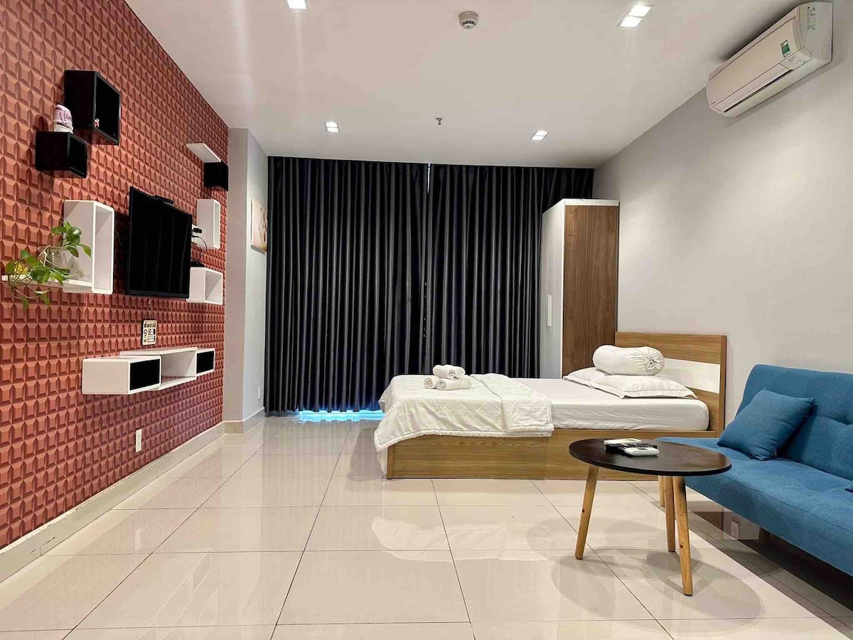 The apartment is suitable for guest and family combining business trip and vacation. It gives visitors the feeling of staying at an elegant hotel but enjoying a family-like atmosphere. - King bed 1.8 x2 meters wide and 1 Sofa bed 1.8x2 meters wide for family of 4 people. - 2 working tables, 1 piano, 58" TV with more than 100 free channels: Netflix, HBO, Max, Sports, - Cooking area, tea table + dining table, minibar, refrigerator, washing machine - Free swimming pool - 5 minutes to the airport