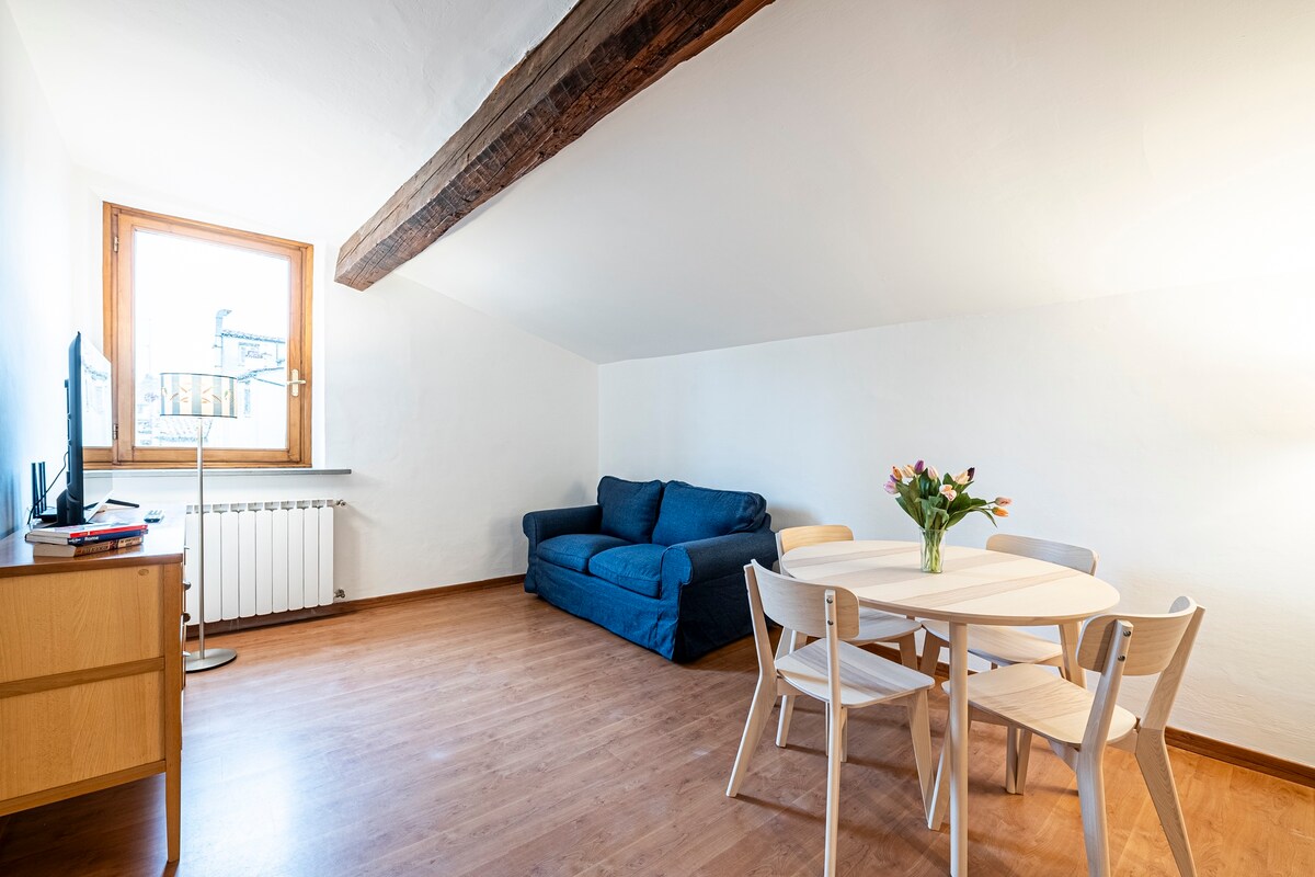 Բացեք մեծ ապակե դռները, որպեսզի տոսկանական խոտաբույսերի բույրը ներս մտնի, քայլեք դեպի կտուրը և չօգտագործեք Սանգյովեզե գինի ՝ Դուոմոյի ցնցող տեսարանները ներծծելու համար: Սանտա Կրոչե և Սանտ Ամբրոջո թաղամասերի տանիքներում գտնվող այս ռոմանտիկ տանիքում կան բոլորովին նոր կենցաղային տեխնիկա, հնաոճ և ձեռակերտ կահույք, երկու լոգասենյակ և բոլոր հարմարությունները, որոնք անհրաժեշտ են Ֆիրենցեն ուսումնասիրելու համար կատարյալ հիմքի համար ։
