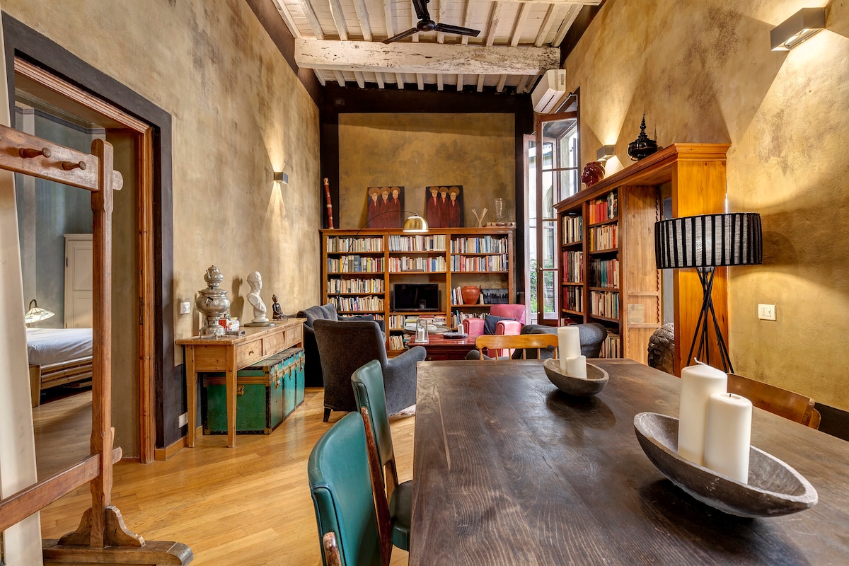Flick through some art books from the comfort of a leather armchair by the library. This renovated apartment with a roomy terrace blends old and new, from antique ceiling frescoes to recent Pompeii-inspired paintings by a famous local artist. Relax in veranda with a glass of delicious Chianti wine, read a book on the terrace, feel the history of the Medici family.