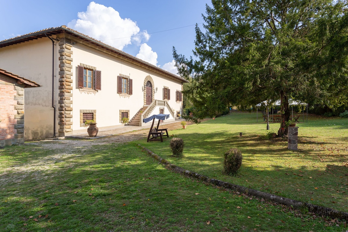 Al primo piano di una Villa di fine '800. Entrata riservata, ampio giardino con resede esclusiva, lettini, sedie, sdraio,ombrelloni, tennistavolo. Barbecue. Piccola piscina per bambini. Wellness room con idromassaggio riscaldato Jacuzzi, box doccia con bagno turco ad uso esclusivo degli ospiti. Parcheggio libero nel parco. Ideale per vacanza in famiglia e per coppie nel rispetto della quiete e del distanziamento. Internet wifi gratuito in tutto l'appartamento. A 30 minuti di auto da Firenze.