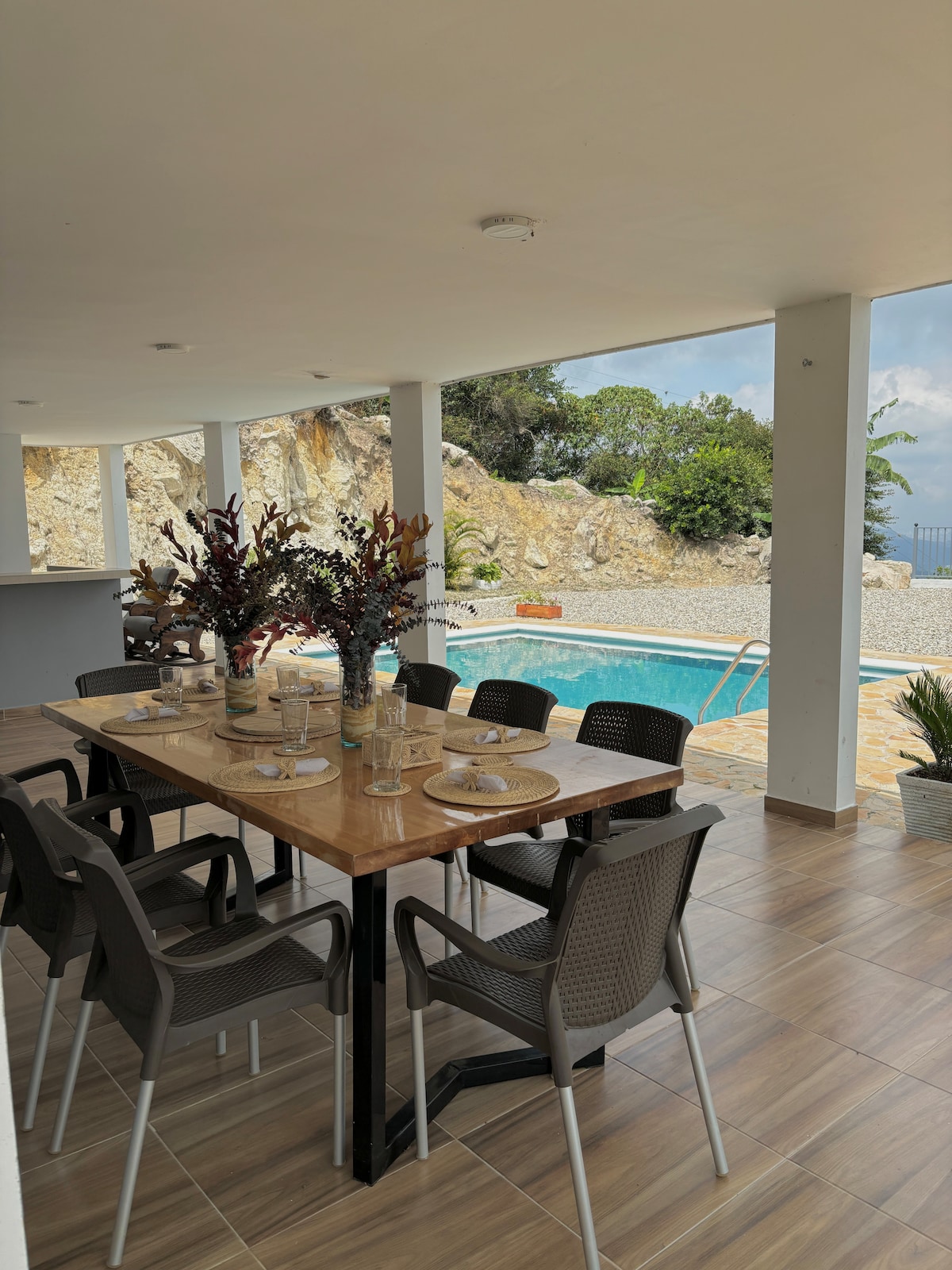 Vive la experiencia de un refugio natural con alma rústica. Entre jardines, madera y luz cálida, cada rincón invita a descansar y reconectar con lo esencial. Disfruta su piscina privada, amplios jardines, terrazas y espacios creados para desconectarte y respirar tranquilidad. Perfecta para disfrutar el silencio, la naturaleza y la calma Ubicada en un sector campestre, cerca a Centros Comerciales y diversas áreas de servicio, diversión y esparcimiento.