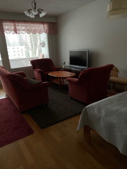 Ընդարձակ բնակարան կենտրոնական վայրում ։ Զարկերակային գյուղի ծառայությունների, ինչպես նաև 6 ճանապարհի կողքին, որը հեշտ է կանգ առնել մեկ գիշերվա ընթացքում: Բնակարանում կան առօրյա կյանքի բոլոր պարագաներն ու կենցաղային սարքերը ։ Բնակարանն ունի չորս հոգու համար նախատեսված քնելու տարածքներ և, անհրաժեշտության դեպքում, հետ կանչվող հյուրասենյակի աթոռ, որը հարմար է փոքր հյուրի համար ՝ որպես լրացուցիչ մահճակալ ։ Լողափի և խայթոցի ուղի ՝ քայլելու հեռավորության վրա ։ Ազգային պարկերը մոտ են Koli - ին, Tiilikkajärvi - ին, Hiidenportti - ին, Peuraajärvi - ին ։ Տնային կենդանիներ թույլատրվում են ։