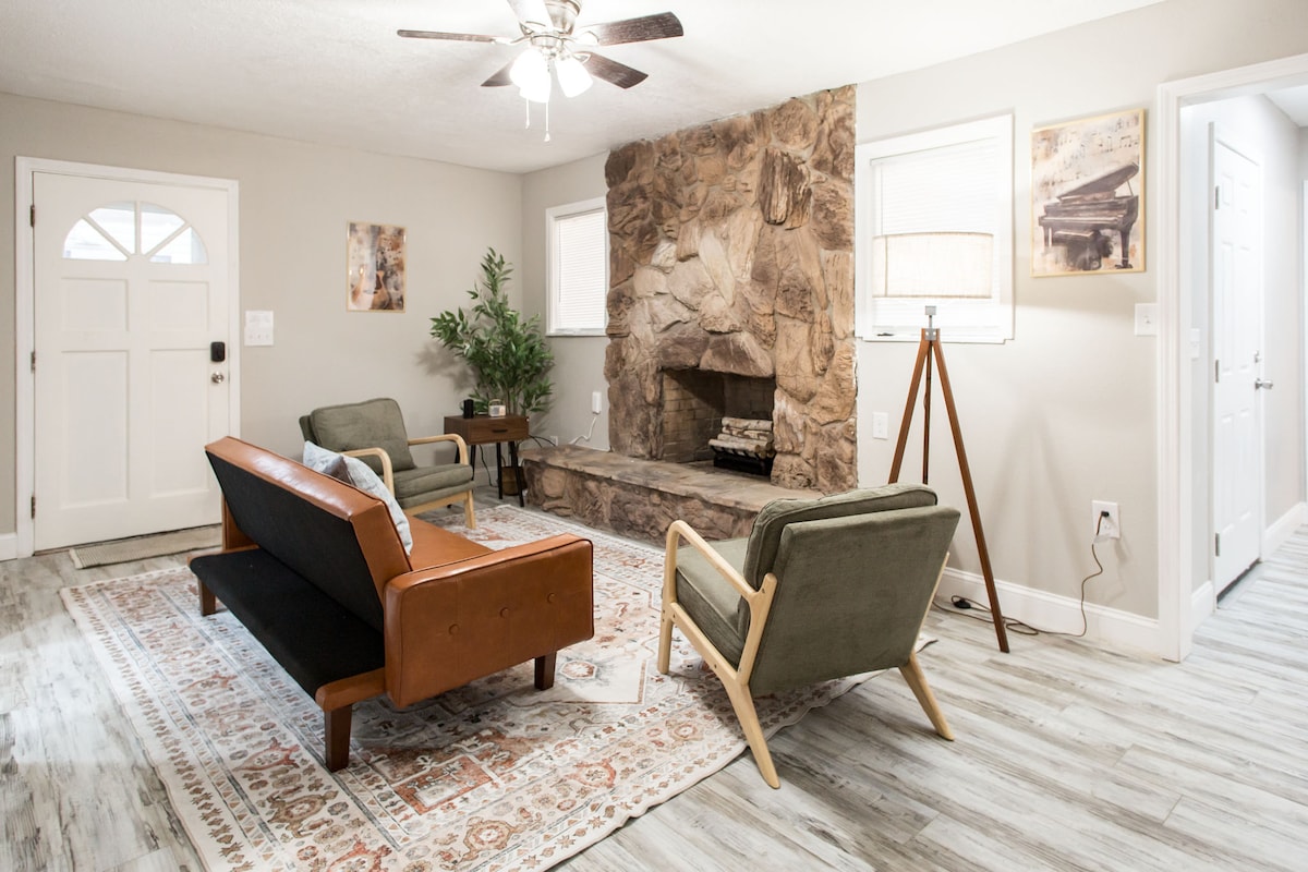 Welcome to your 3000sqft Southern Comfort home and the gateway to the Okefenokee Park Adventures. Meal prep in a fully stocked island kitchen with stainless steel Whirlpool electric appliances. Enjoy a large private backyard patio ready for a briquette BBQ. The sunroom has a wet bar and a regulation slate pool table. The dining room seats 8 in front of the wood-burning fireplace. The neighborhood is scattered with antebellum architecture and towering pines. You are minutes from the city center