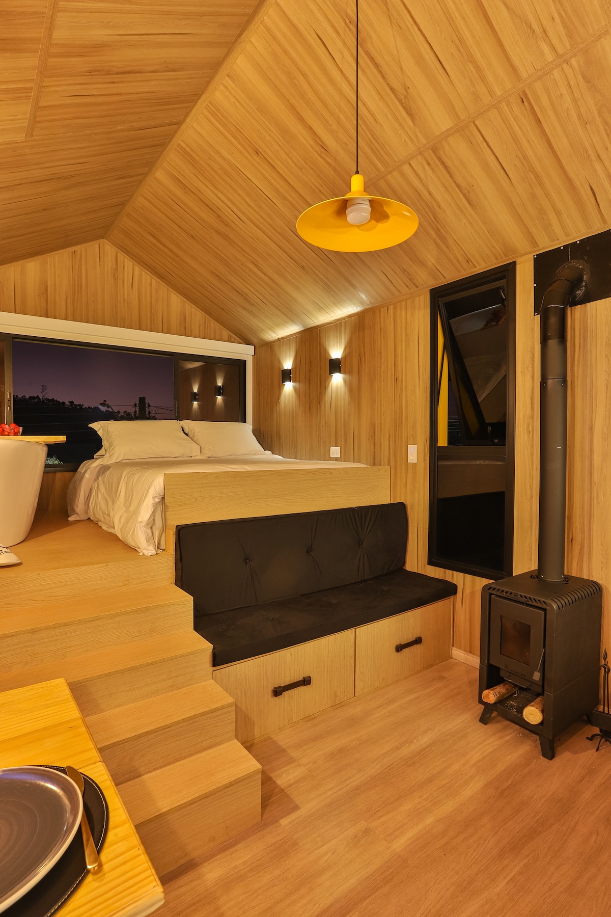 Chalé Canário ՝ հիդրոյով, բուխարիով և գեղեցիկ տեսարանով