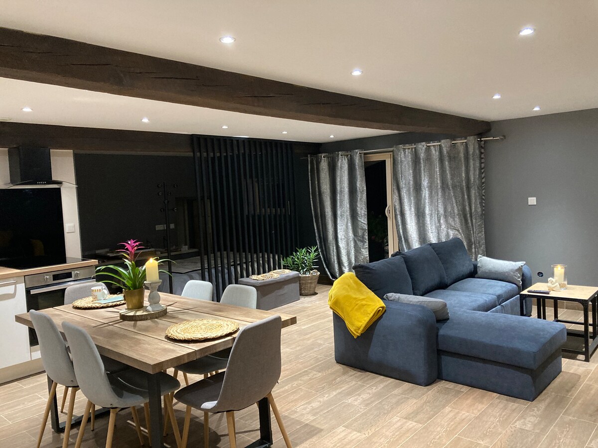 Պուատիերսի կենտրոնից 5 րոպե հեռավորության վրա և գտնվում է խաղաղ տարածքում ՝ 2 հոգու համար նախատեսված այս բնակարանը իդեալական է հանգստի համար ։ Հյուրասենյակ հեռուստացույցով և Netflix - ով, սեղան ՝ բարձրացված վերնամասով, կահավորված խոհանոց, լոգասենյակ ՝ ցնցուղով ։ Առանձին այգի ՝ առանց տեսանելիության, նրբագեղ պարտեզի կահույքը և բացօթյա ցնցուղով ջեռուցվող ջակուզիները այս հմայիչ բնակարանի հիանալի միջոցներն են: Անկախ այն բանից ՝ զույգ եք, թե ընկերների հետ, դա ձեզ թույլ կտա բացահայտել Պուատիերսի շրջանը ։