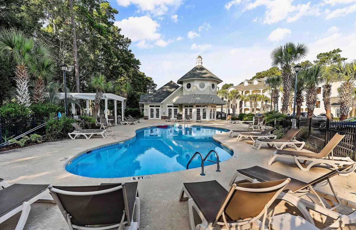 Վերադարձեք և հանգստացեք այս թարմացված, հանգիստ, ոճային տարածքում ։ Հարմարավետորեն տեղակայված է Միրթլ Բիչի բոլոր տեսարժան վայրերի հարևանությամբ ։ Ֆանտաստիկ հանգիստ ընտանեկան ուղևորության կամ ծովափնյա հանգստի համար ։ Վայելեք մեր Keurig սուրճի հարմարությունները, որոնք անվճար են: Ստացեք այն քունը, որն իսկապես արժանի եք երկու ննջասենյակներում գտնվող երկտեղանի մահճակալների վերևում ։ Բազմոցից դուրս գալը ևս երկուսը քնում է բարձրորակ հիշողության փրփրապլաստե ներքնակի վրա ։ Վայելեք ձեր սուրճը պատիոյի շեյզ լաունջներում, որոնք ապահովված են անտառներով: Լողավազան և ջակուզի տեղում ՝ ապրիլ - հոկտեմբեր