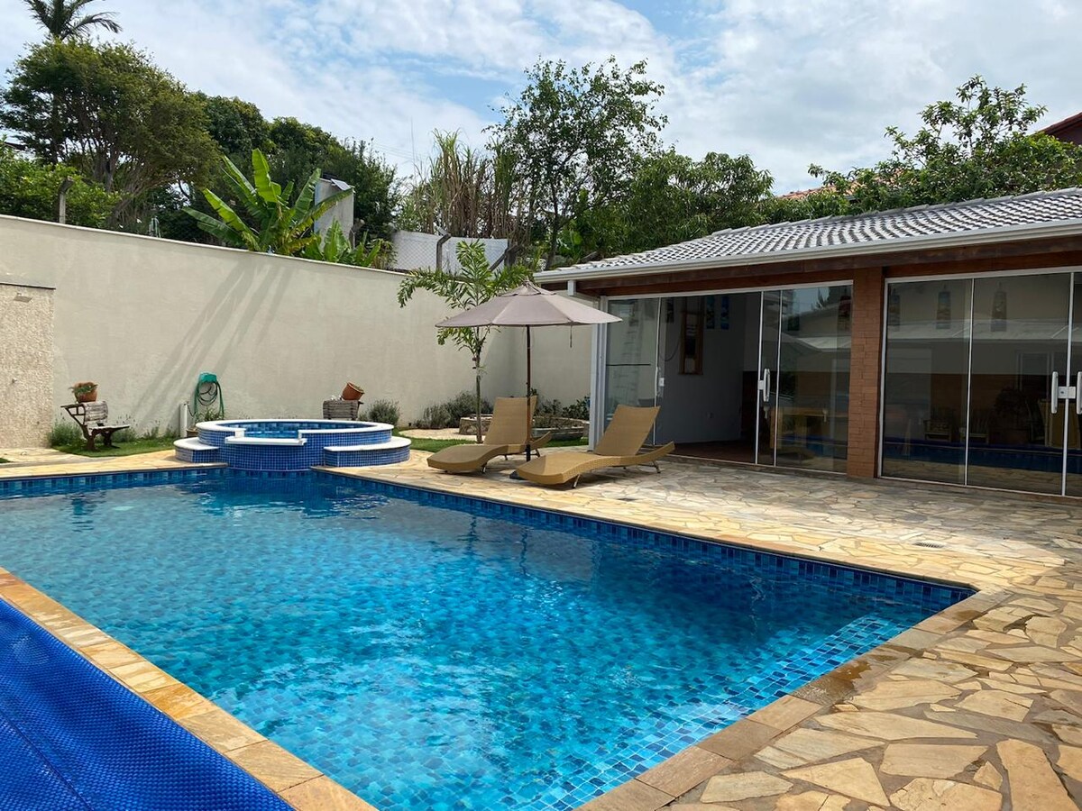 Սիրահարվեք այս գեղեցիկ գյուղական տանը ՝ հարմարավետ և լավ տեղակայված Circuito das Águas - ի մոտակայքում ։ Ննջասենյակներում կա տաք և սառը օդորակիչ ։ Վայելեք արևային ջեռուցմամբ և ջերմափոխանակիչով լողավազան (ամբողջ տարվա ընթացքում ջուրը տաք է պահում), ինչպես նաև 7 հոգու համար նախատեսված ջակուզի ՝ լողավազանի կողքին ։ Այս հանգիստն առաջարկում է հարմարավետություն, հանգստություն և հանգիստ բնության գրկում ։ Կատարյալ է նրանց համար, ովքեր ձգտում են հանգստի, հանգստի և բացօթյա կապի հետ ։ Առավելագույնս օգտվեք այս հմայիչ հանգստի բոլոր մանրուքներից ։