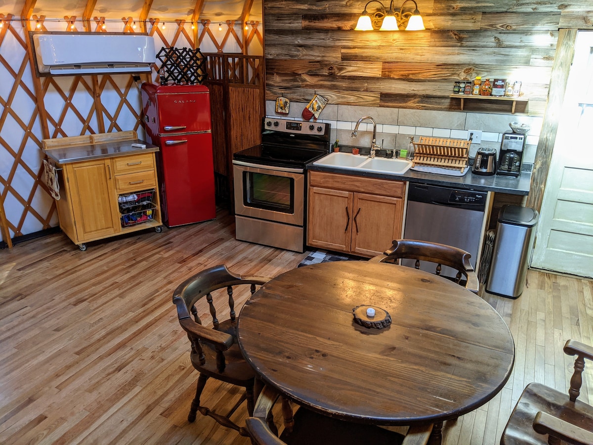 Հանգստացեք մեր վերանորոգված 1973 թվականի Airstream - ում ՝ Հոթ Սփրինգս քաղաքում, որը շրջապատված է բնությամբ և ագարակային կենդանիներով ։ Panther Branch Farm - ը գտնվում է 30 հեկտար փարթամ լեռնային տեղանքի վրա ՝ առվակներով, ջրվեժներով և արշավային արահետներով, որոնք կարելի է ուսումնասիրել: Մեր փոքրիկ ագարակում կան հավեր, մեղուներ, այծեր և ալպականեր, որոնք սիրում են ձեռքով սնվել ։ Քանդեք մեր բացօթյա սպա կենտրոնը ՝ սաունայով և բնական աղբյուրի ջրով լոգարանով կամ պարզապես հանգստացեք և վայելեք Ազգային անտառի խաղաղ տեսարանները այս գեղեցիկ Airstream - ի շքամուտքից: