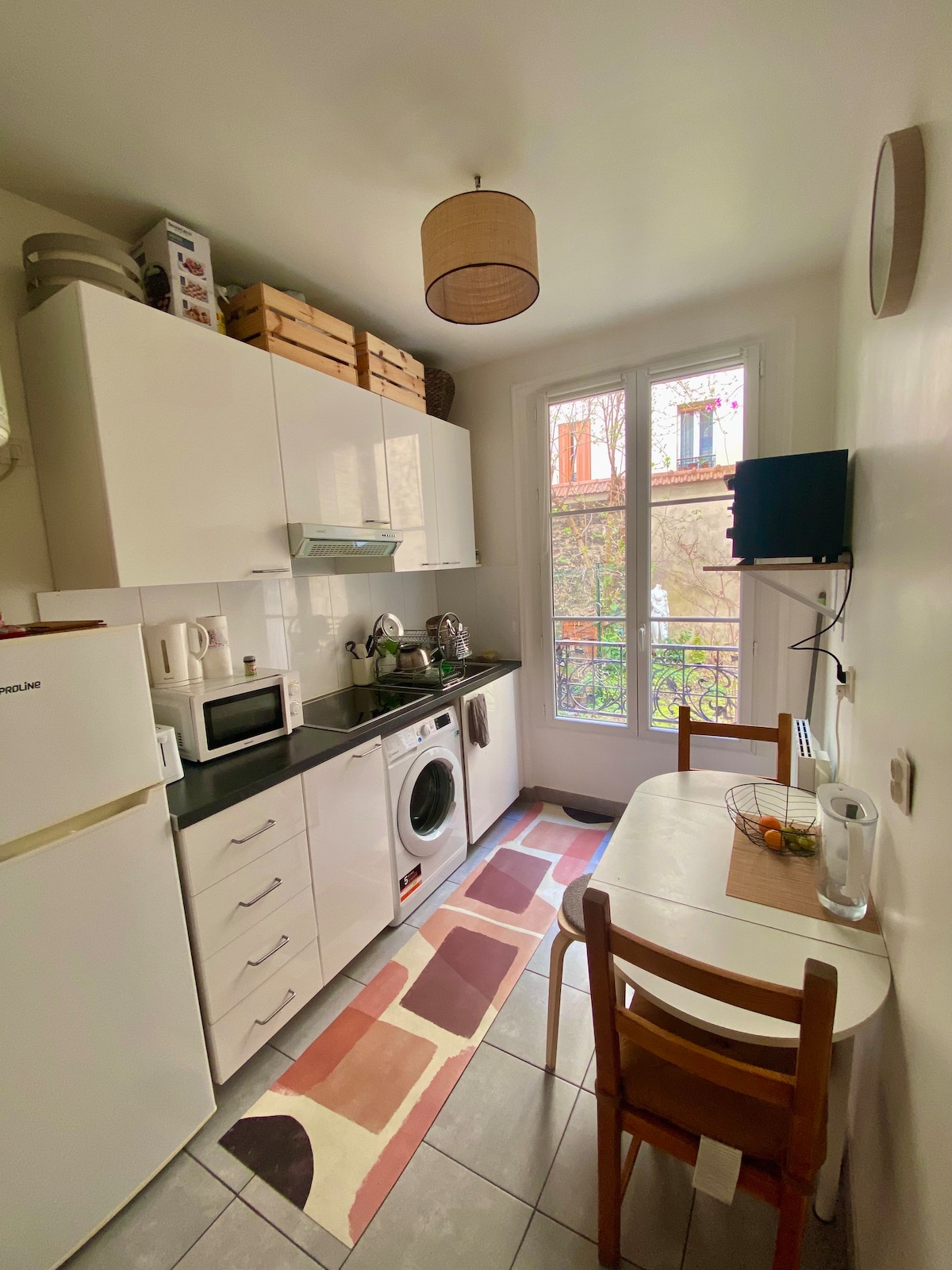 Enjoy our elegant Parisian apartment. We are also happy to share our 15 years of Parisian experiences as well as our tips and habits regarding activities around our neighborhood and in Paris ! The apartment is fully furnished and offers a kitchen open to the living room, a bedroom with a large quality double bed (160×200) and a bathroom. The apartment is located on the 4th and last floor (without elevator: not recommended for XXL luggage)!
