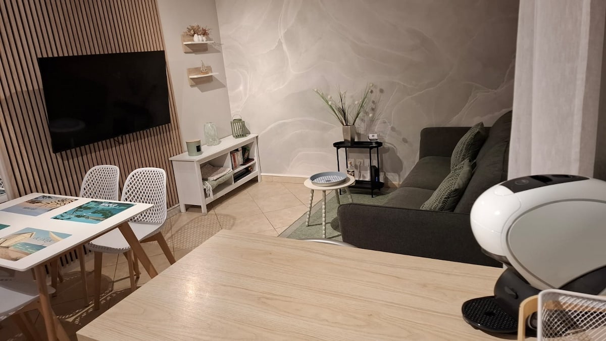 🌴 Նորաձև 2 սենյականոց բնակարան • 30 մ² սալօթևիլ • ☀️ Ավտոկայանատեղի • Օդորակիչ • Wi-Fi • Քայլելու հեռավորության վրա լողափից • Անտիբ / Ժուան-լե-Պեն ⭐ Կատարյալ է Ֆրանսիական Ռիվիերայում հանգստի համար | Ընտանիքներ և հեռավար աշխատանք Վերանորոգված 2 ննջասենյականի բնակարան (70 քմ / 750 քառ. ֆուտ)՝ 30 քմ (320 քառ. ֆուտ) արևոտ տերասով (հարավային և արևմտյան կողմերում)։ Հանգիստ բնակելի տարածք, ընդամենը մի քանի քայլ հեռավորության վրա են լողափը, երկաթուղային կայարանը և խանութները։ ✨ Առանձնահատկություններ ✔️ Մասնավոր, անվտանգ կայանատեղի ✔️ Արագ Wi - Fi ✔️ Օդորակիչ ամբողջ տարածքում ✔️ Լվացքի մեքենա և չորանոց ✔️ Քայլելով դեպի լողափ և գնացք (10 րոպե)