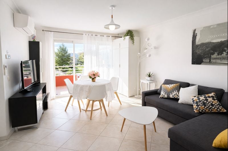 “Azurie Juan les Pins”, in the heart of Juan les Pins, 2 minutes walking from the sandy beaches, a 4 persons place with a underground parking place, newly renovated and fully equipped apartment (washing and drying machine, dishwasher, coffee machine, microwaves, reversible AC). Beautiful terrace sea view on the right side. Calm. Our beautiful apartment has a desk corner with fiber optic internet. 2 rooms (1 bedroom, 1 living room with a convertible coach), 54 m2. Airport transfer possible!