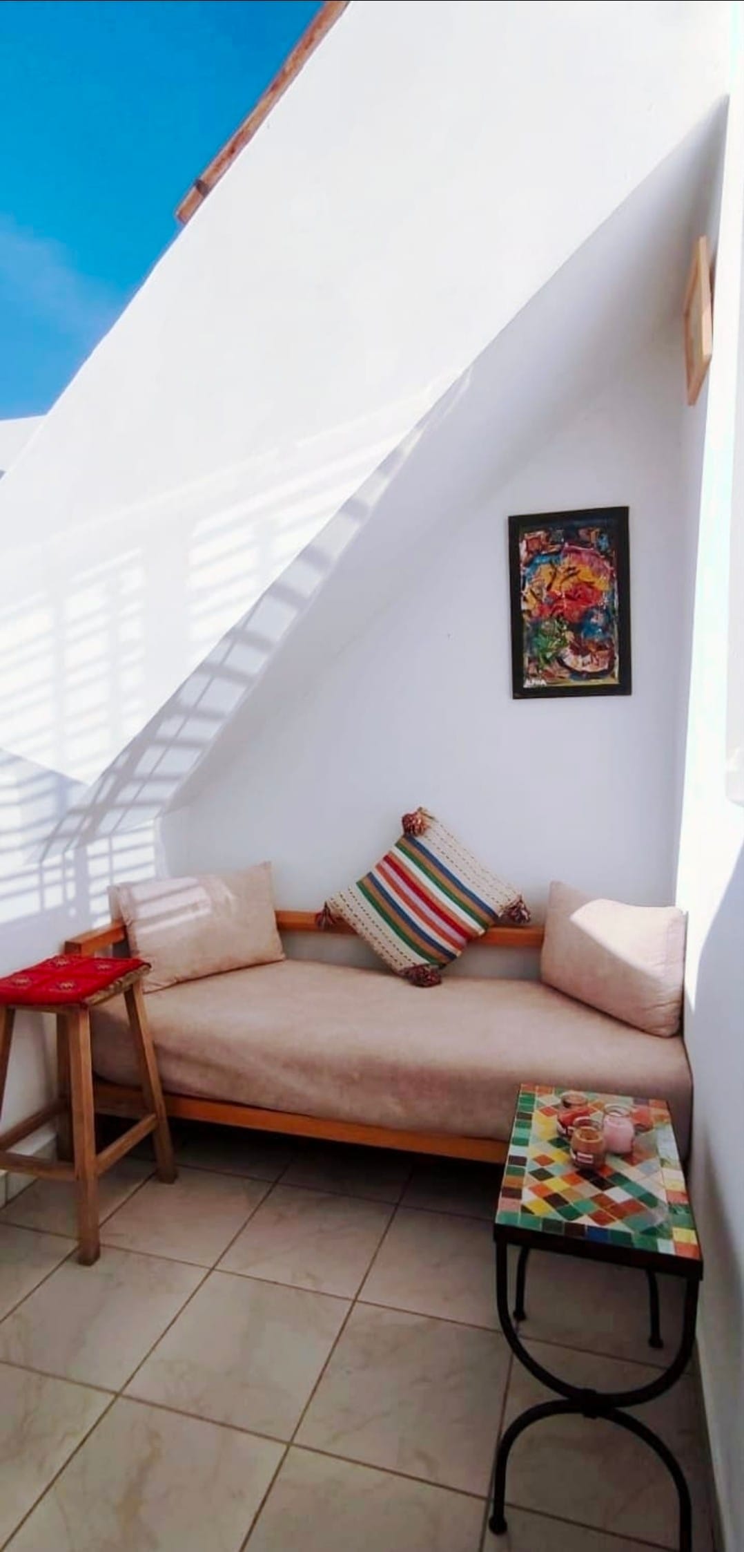 Studio atypique et lumineux sur un grand rooftop féerique privée, au sommet de La Casa Guapa. Chambre cosy avec lit king-size, salle d’eau, cuisine extérieure en bois sous pergola, vue sur la médina et l’océan. Idéal pour une escapade à deux, au calme, en pleine lumière dans un lieu magique et atypique. Coin repas, transats, Wi-Fi. Situé dans un quartier authentique et vivant, à moins de 10 min de la plage et 20 min de la Médina. Services sur demande : transferts, massages, activités...