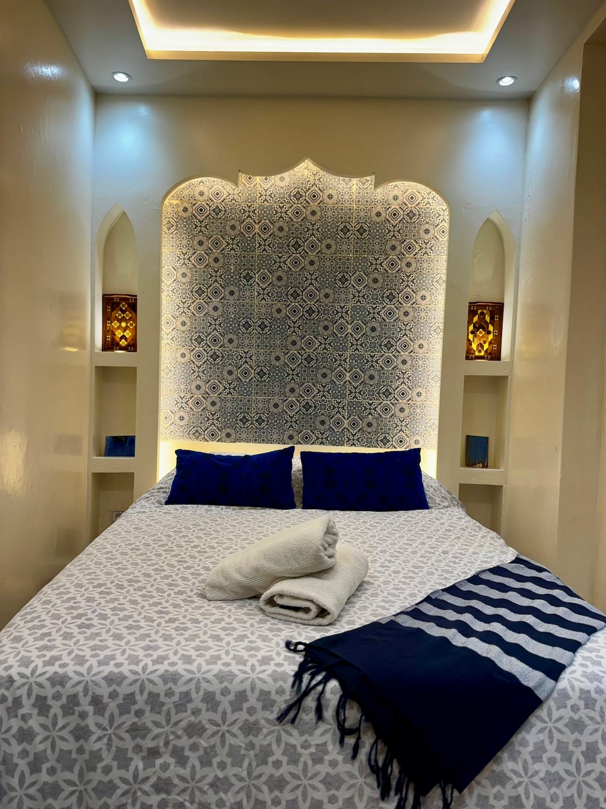 Niché au cœur de la vieille médina, notre appartement offre plus qu'un simple hébergement, c'est un portail pour vivre la vie locale tout en profitant du confort d'une maison loin de chez vous. Au milieu du charme intemporel de la ville antique, où la tradition rencontre la commodité moderne. Il offre une retraite sereine loin des rues animées, offrant une atmosphère calme qui vous met à l'aise. Bien qu'elle soit située au centre, elle offre une oasis paisible où vous pouvez vous détendre.