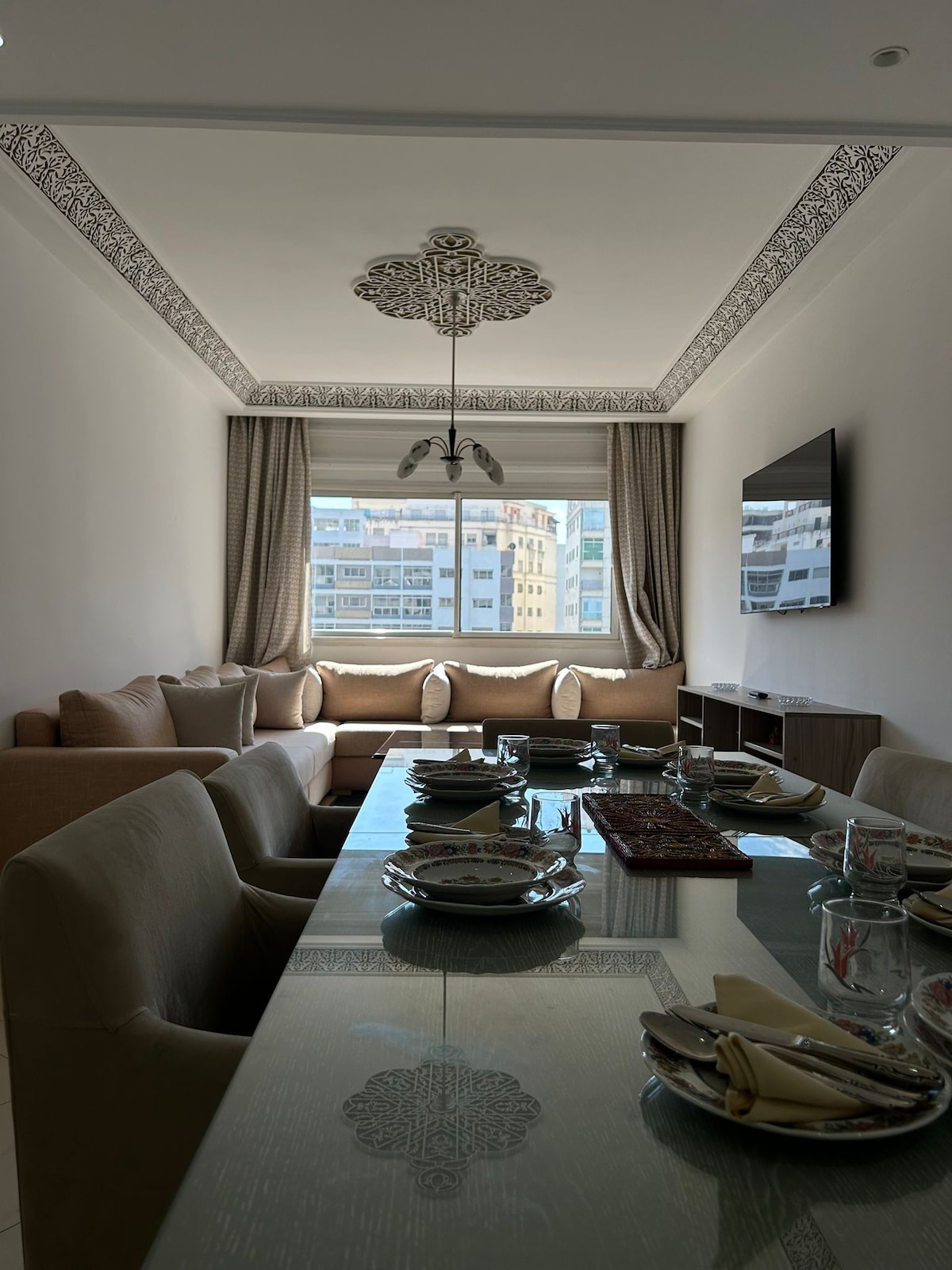 Welcome to our gem at Tanger's Marina. Immerse yourself in Mediterranean luxury in our stylish apartment with panoramic sea views from the window. Offering unparalleled accessibility and just steps away from the famous Corniche Malabata, our haven combines modern elegance and traditional charm. Whether you're seeking a romantic getaway or a relaxing retreat, our apartment provides the perfect setting for an authentic experience in Tanger.