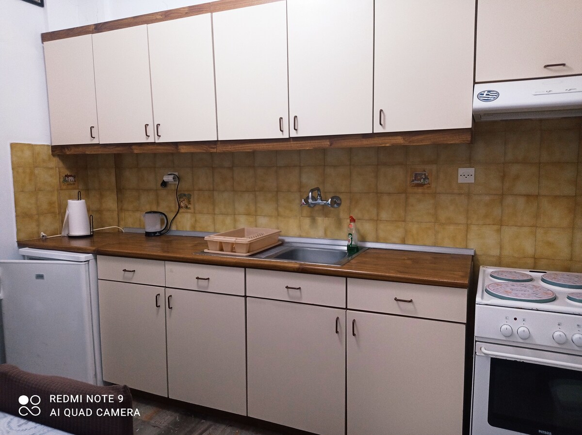 Simplicity, earthing, relaxation. We offer you a town apartment, just below the Castle, in the heart of the old town of Myrina. The apartment is part of a 1950s stone house in the historical center of the town and has been renovated in the summer of 2019! The market route with cafes, folk art shops and the Romeikos Gialos sandy beach, are two walking minutes away. The old harbor and the seafront promenade are five walking minutes away. Prime location to enjoy the old town vibes!