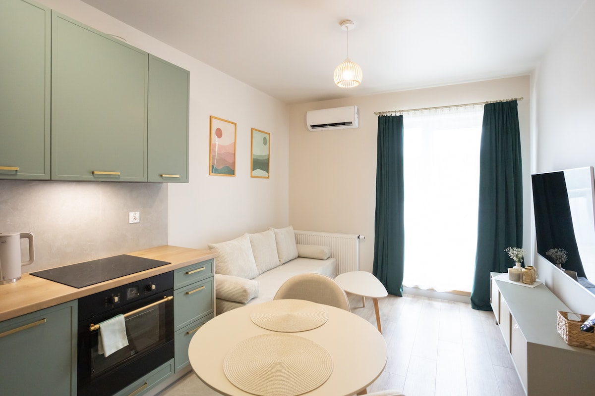 Եթե հարմարավետ և հարմարավետ բնակարան եք փնտրում Ավգուստովում ավելի կարճ կամ երկար այցի համար, մեր ստուդիան կատարյալ ընտրություն կլինի ։ Բնակարանը բաղկացած է լիովին կահավորված խոհանոցից ՝ ճաշասենյակով, նստատեղից ՝ բազմոցով և մեծ զգեստապահարանով, և ընդարձակ լոգասենյակից ՝ լվացքի մեքենայով ։ Ստուդիան գտնվում է ժամանակակից թաղամասում ՝ վերելակով, իսկ ստորգետնյա ավտոտնակի սրահում կա նաև կայանատեղի ։ Մոտակայքում կան գեղեցիկ լճեր, անտառային և հանգստի գոտիներ: