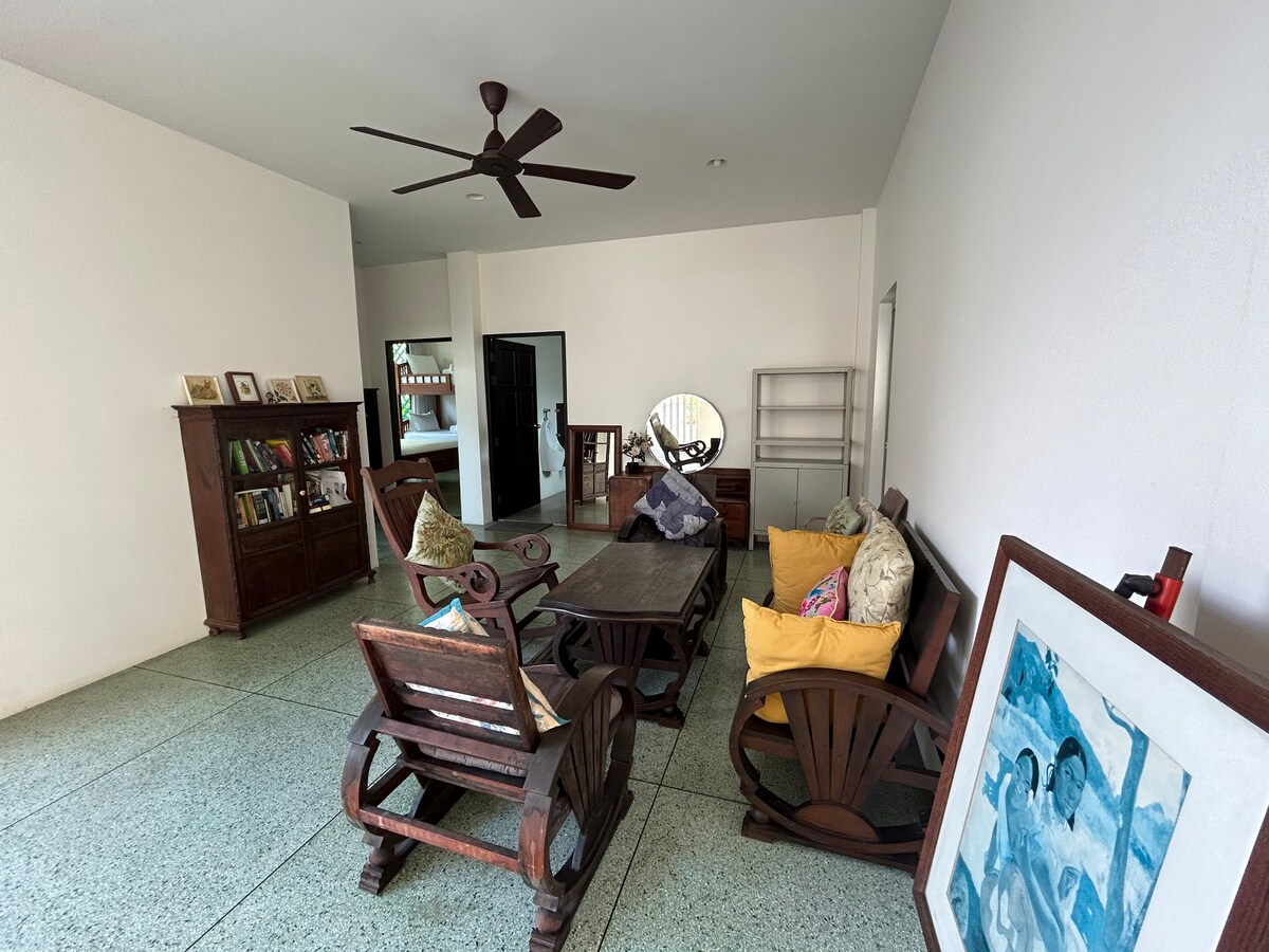 Մեր տարածքը կատարյալ է ընտանիքների և ընկերների համար ՝ ընդունելով մինչև 8 հյուրի ։ Մեր 2 ննջասենյակներից յուրաքանչյուրն ունի 1 երկտեղանի մահճակալ և 1 երկհարկանի մահճակալ ՝ գիշերային հարմարավետ քնելու համար ։ Վայելեք մեր բացօթյա բնակելի տարածքը, ընդարձակ լոգասենյակ ՝ տրամադրված սրբիչներով և հիգիենայի պարագաներով, անվճար Wi - Fi, Հանգստացեք ընդհանուր բացօթյա լողավազանում ։ Ամենից լավը ՝ մեր հիմնական վայրը թույլ է տալիս քայլել դեպի բոլոր հիմնական տեսարժան վայրերը, այդ թվում ՝ Մեծ պալատը ։ Միացեք մեզ և անցկացրեք ֆանտաստիկ հանգիստ Բանգկոկում