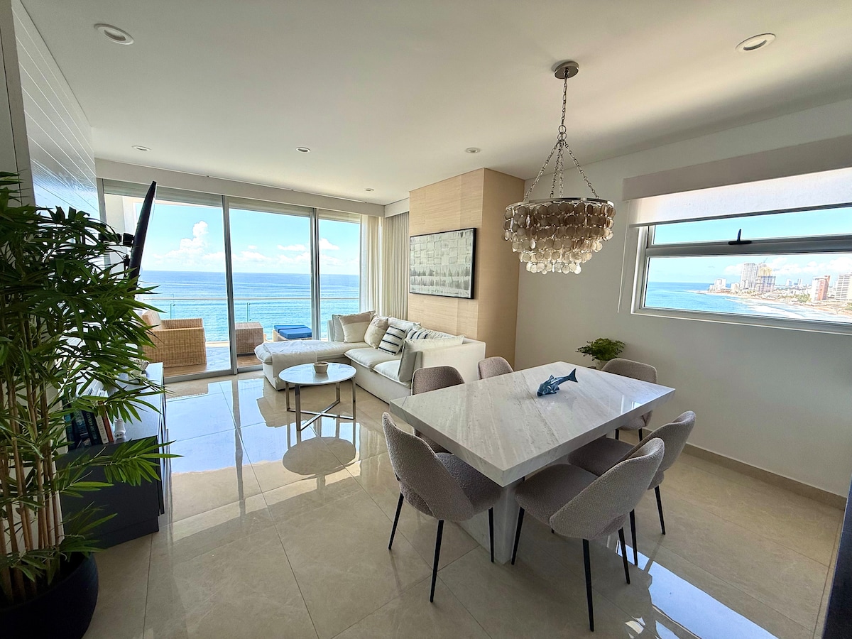 Բոլորովին նոր շքեղ կոնդոմինիում հենց Լաս Գավիաս Գրանդի լողափում, որը Մազաթլանի ամենաբացառիկ և ժամանակակից զարգացումն է, հիանալի վայրում: Տպավորիչ տեսարաններ օվկիանոսից ։ Պրոֆեսիոնալ ինտերիերի դիզայն և բարձրորակ կահույք, կենցաղային տեխնիկա, 85 "+ հեռուստացույց, գինու սառնարան և այլն ՝ հարմարավետ, հարմարավետ և հանգստացնող հանգստի համար ։ Լրիվ խոհանոց ՝ կենցաղային տեխնիկայով, Nespresso - ով, ամանալվաց մեքենայով և այլն ։ Անհավանական անվերջության լողավազաններ մեծահասակների համար և հիանալի մանկական լողավազաններ, ջակուզիներ, գեղեցիկ լողափ և բնությամբ ու խաղաղությամբ լի ընդհանուր տարածքներ ։